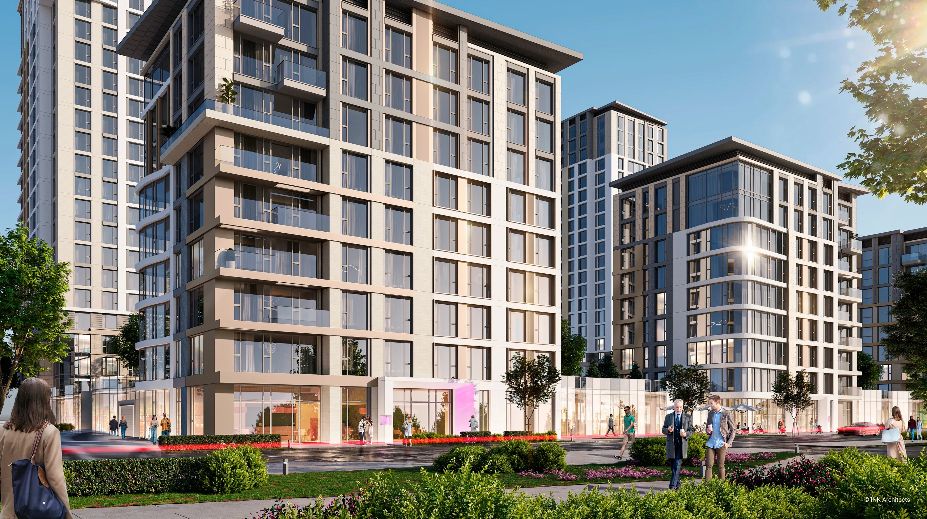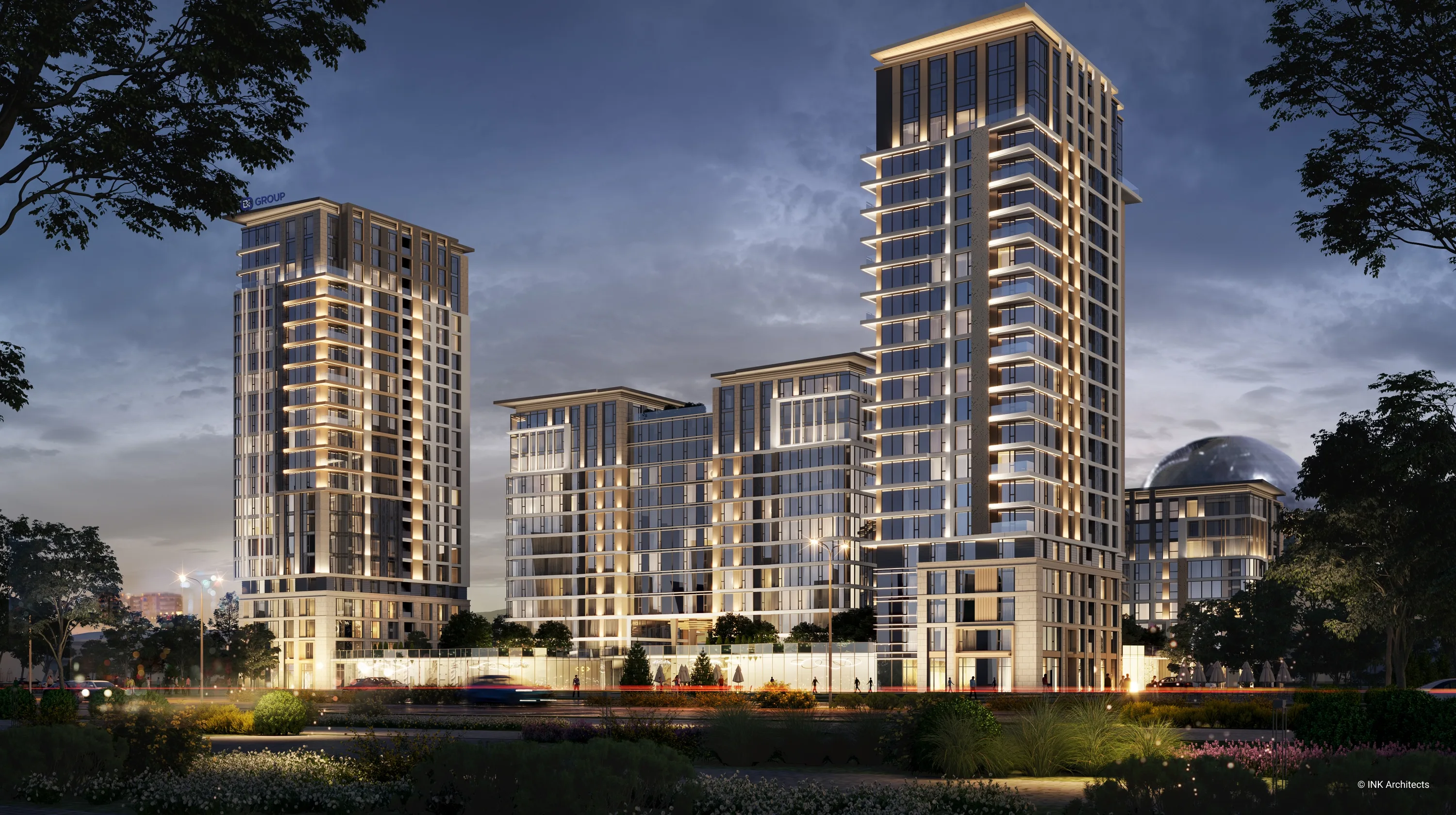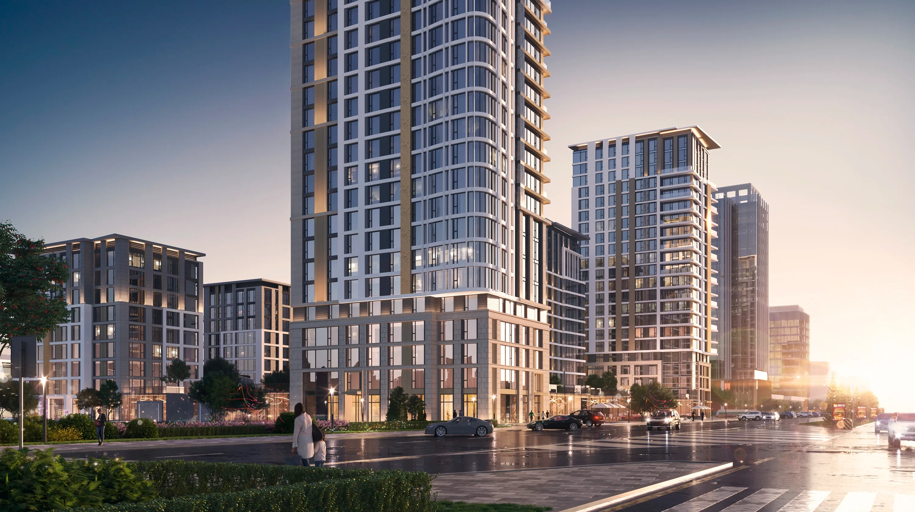 Проект представляет собой современный многоквартирный жилой комплекс, расположенный в живописном и престижном районе столицы — районе Есиль на проспекте Мангилик Ел, в непосредственной близости от места проведения ЭКСПО-2017. Архитектурный ансамбль состоит из семи жилых корпусов переменной этажности — 9, 13 и 22 этажа, — которые создают динамичный и выразительный силуэт. Здания построены по монолитному железобетонному каркасу с современными вентилируемыми фасадами и витражными системами. Особое внимание уделено комфорту жильцов: высокие потолки — 3 метра на стандартных жилых этажах и 3,3 метра на верхних. Комплекс спроектирован с ориентацией на семейное проживание, что отражено в структуре квартир: почти 92% квартир — это просторные 3- и 4-комнатные квартиры. Для удобства автовладельцев предусмотрен вместительный паркинг на 461 место, что значительно превышает требуемые 318 мест. Внутренняя территория комплекса продуманно спроектирована для отдыха и досуга. Более половины участка отведено под озеленение, общая площадь озеленения составляет 10 996,1 м². Проект предусматривает обширную инфраструктуру, включая детские игровые площадки, спортивные площадки и зоны отдыха для жителей.