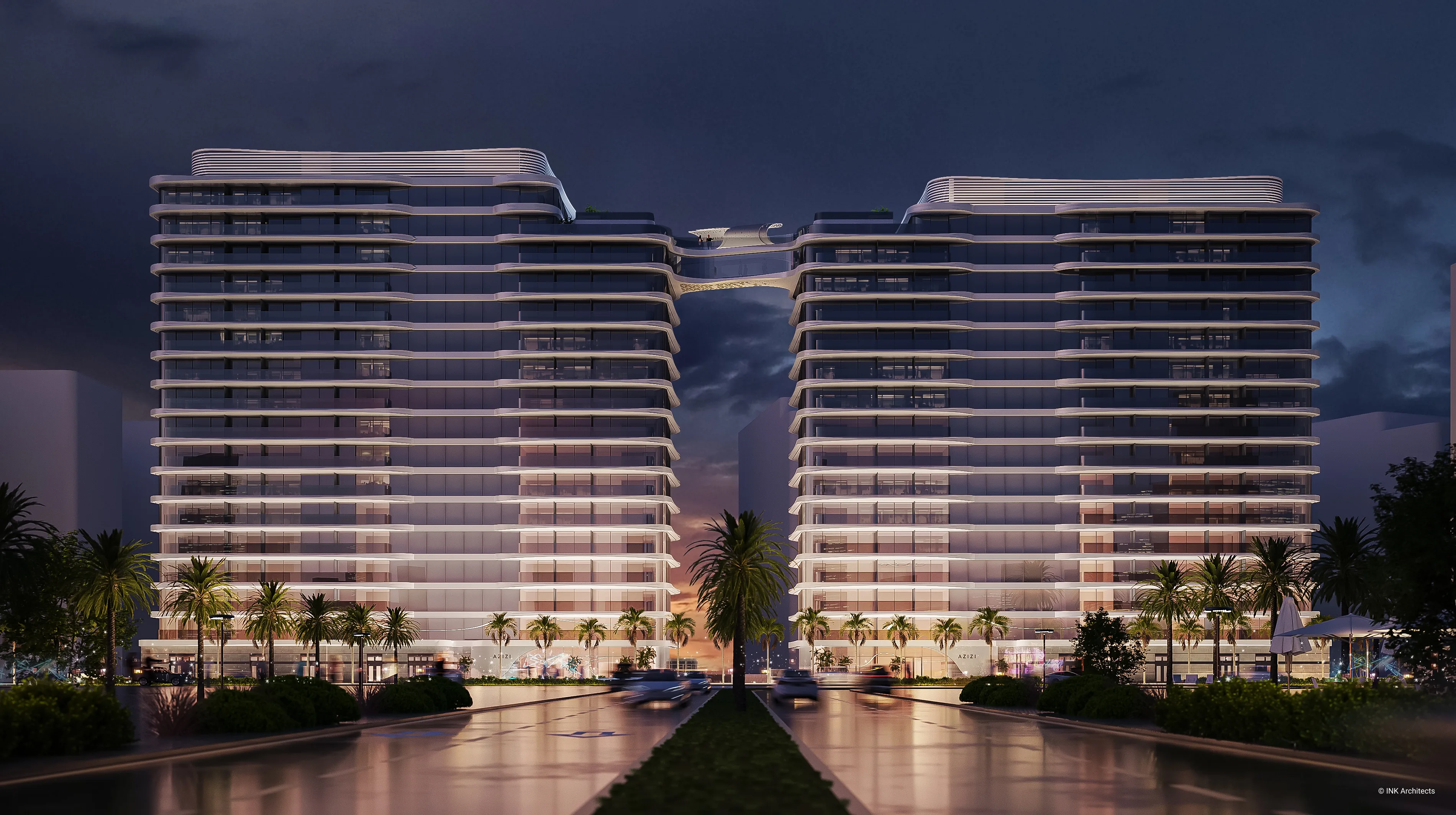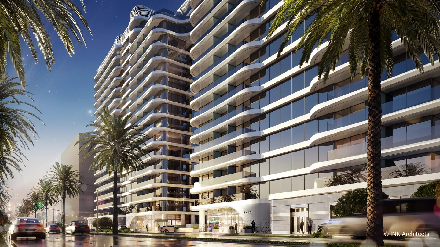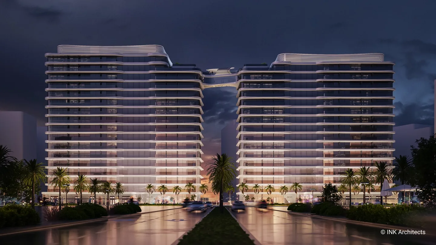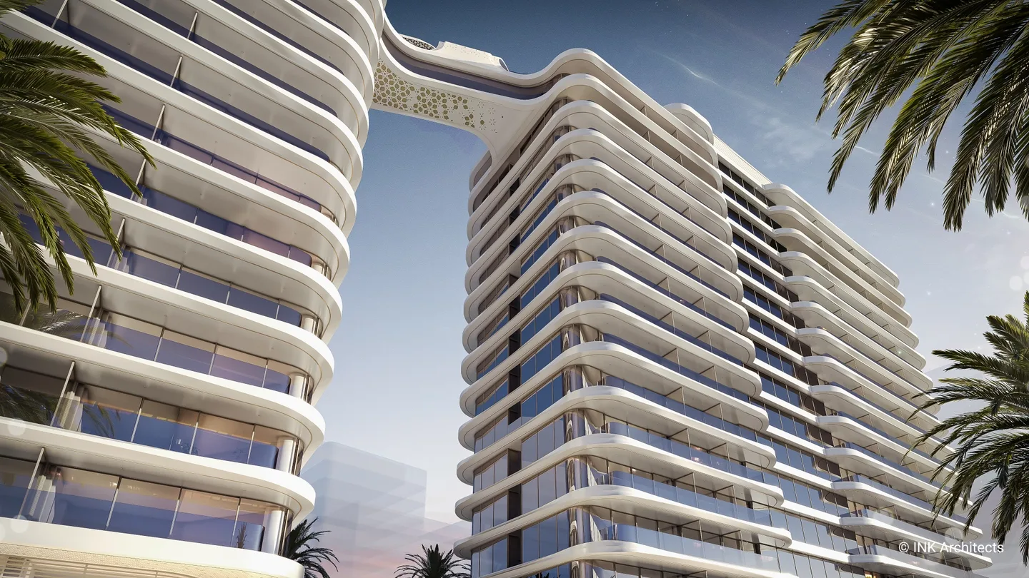 Жилой комплекс Azizi Venice в Дубае воплощает современную элегантность благодаря плавным архитектурн��м линиям, напоминающим динамические волны, что придает ему футуристический, элегантный вид. Характерные непрерывные горизонтальные полосы здания огибают фасад, создавая ощущение плавности и движения. Эти изгибы не только добавляют эстетики, но и функционально улучшают аэродинамику здания, повышая энергоэффективность. Комплекс состоит из двух башен, соединенных потрясающим подвесным мостом, который одновременно является визуальным акцентом и обеспечивает практическую связь между зданиями. Стеклянный фасад максимально увеличивает естественное освещение, открывая панорамные виды на окрестности и гармонично сочетая внутренние помещения с ярким городским пейзажем. Использование высококачественных материалов, таких как стекло, сталь и железобетон, обеспечивает долговечность и прочность, что особенно важно в условиях дубайского климата.