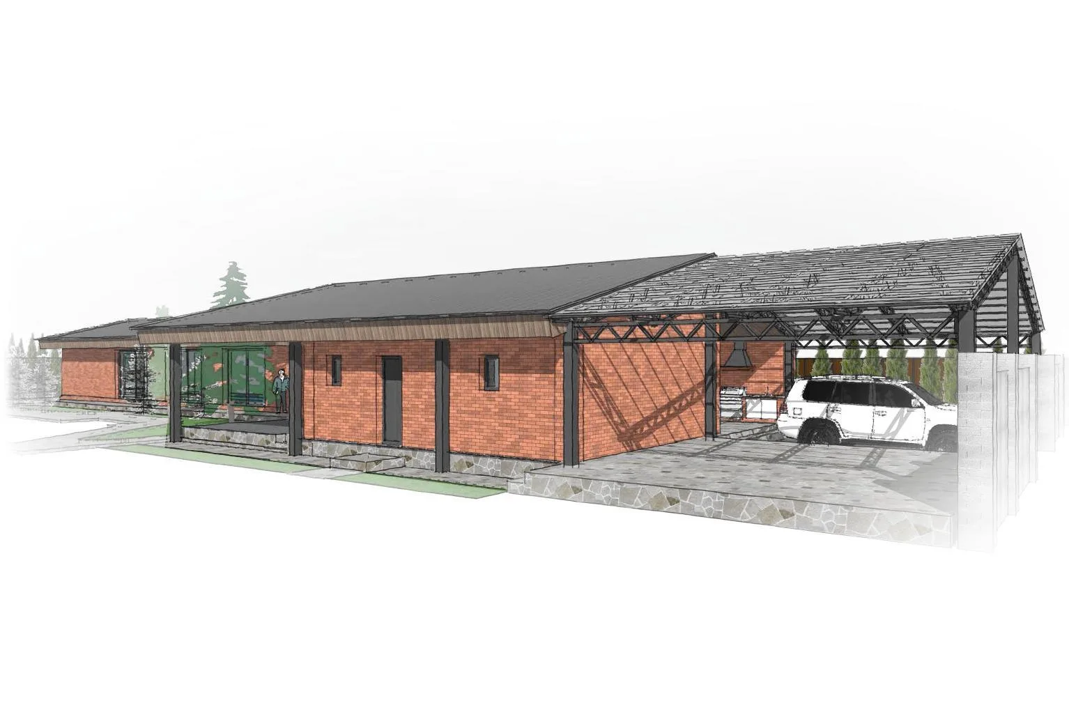 Реконструкция существующей сауны, а также возведение нового частного банного комплекса с бассейном, зоной отдыха, тренажерным залом и парными комнатами. <br> <br> Адрес: Горный Гигант, Алматы <br> Год: 2020 <br> Статус: строительство <br> Площадь: 430м²