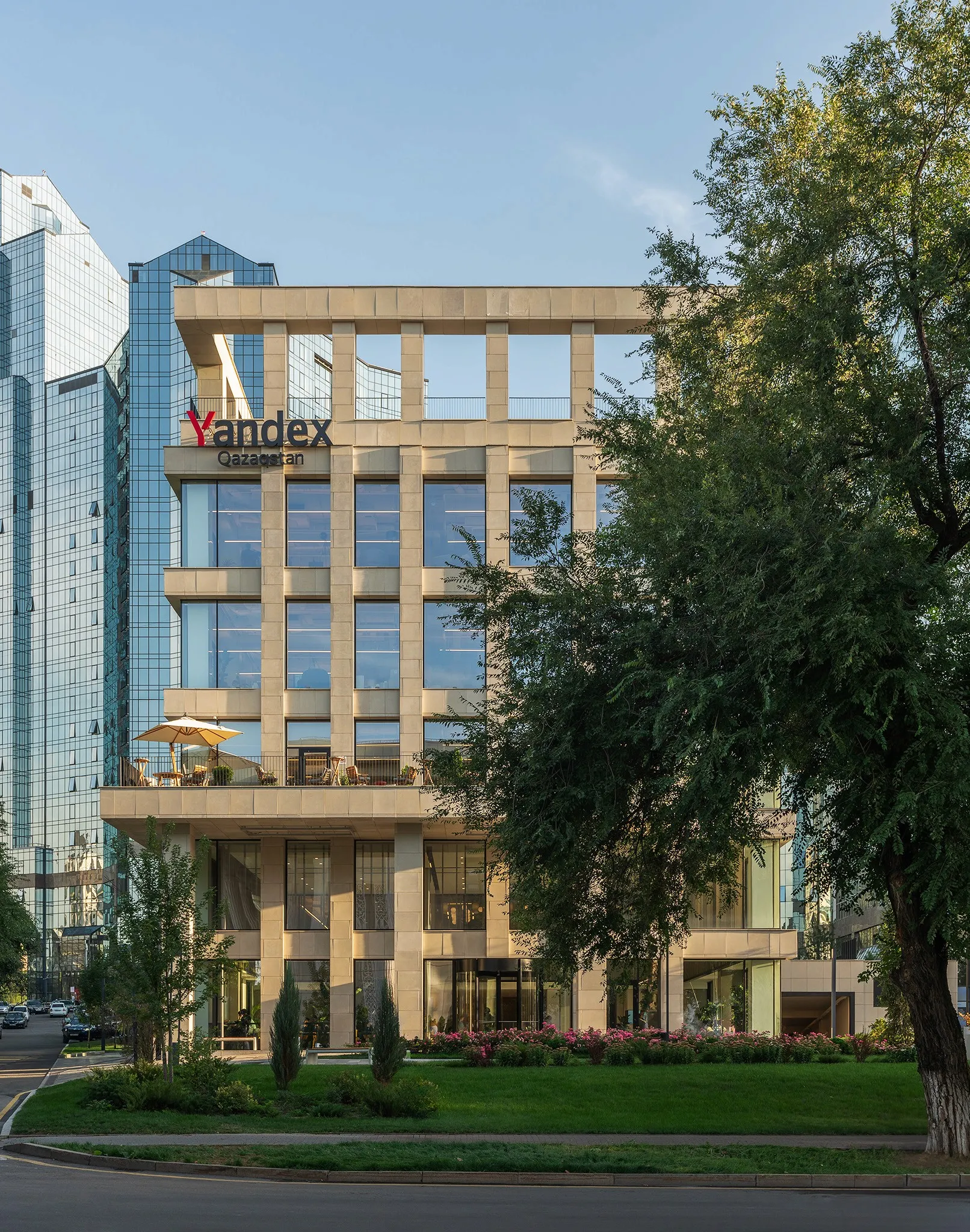 <div class="description">В сердце Алматы стоит здание, чья структурная ясность и материальность предполагают нечто большее, чем типичный офис. Это не просто рабочее место — это манифест современного архитектурного мышления, которое ставит на первое место рациональность, комфорт и контекстуальную чувствительность. Этот проект ведет тихий диалог с городом и его окружающими стеклянными башнями, сохраняя при этом сильное чувство автономии. Здесь нет стремления к зрелищности или показной форме. Вместо этого измеренный ритм фасадов создает ощущение стабильности и уверенности. Среди сверкающих небоскребов здание Yandex Kazakhstan контрастирует — ссылаясь не на блестящее будущее, а на нечто более приземленное и долговечное. Каменная облицовка, точные линии и сдержанные формы придают ему авторитет, который не требует объяснений. Входная зона с высокими потолками подчеркивает значимость пространства, не перегружая его избыточными деталями. В этом проекте мы стремились создать архитектуру, которая говорит на языке комфорта, технологической sophistication и тонкой эстетики. Здесь нет места для грандиозных жестов — только для продуманного дизайна, который добавляет слой смысла к городской среде.</div>