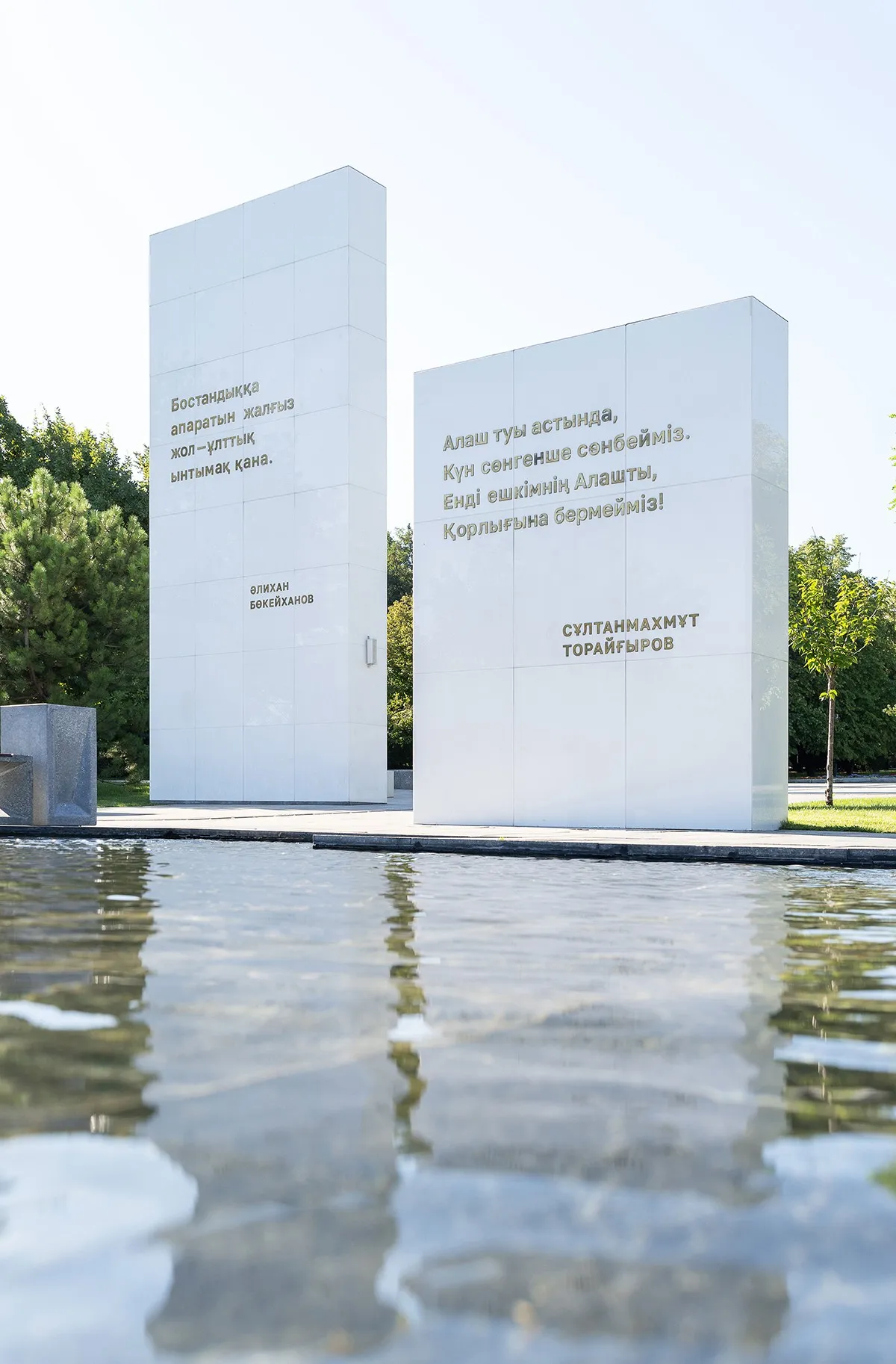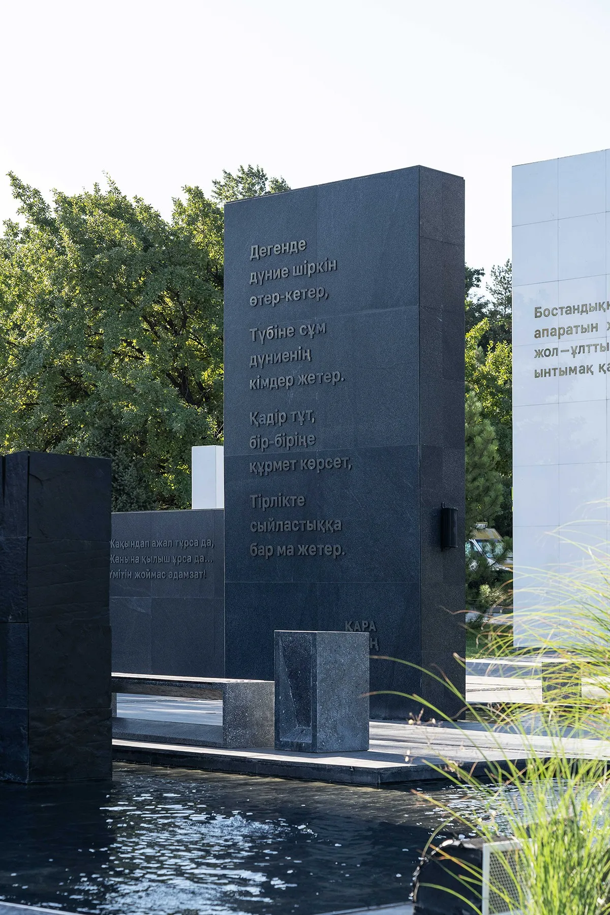 <div class="description">Концепция Мемориала “Tağzym” основана на двойственности: черные и белые стелы как символы жизни и смерти, надежды и утраты, света и тени. Белый мрамор олицетворяет чистоту, невинность и память. Черный гранит несет тяжесть горя, неизбежность времени и след боли. Контраст между этими материалами создает эмоциональное напряжение, вызывая у посетителя почти физическое чувство трагедии. Пространство наполнено водой: зеркальная поверхность отражает выгравированные тексты, размывая границу между реальностью и ее отражением, между прошлым и настоящим. Вода здесь не только символ очищения, но и метафора времени — постоянно текущего, уносящего воспоминания вперед, не позволяя им полностью исчезнуть. Гравировки на стелах — это голоса поэтов и мыслителей, застывшие в камне. Они говорят о единстве, памяти и почтении к жизни. Это не просто эпитафии — это попытки диалога между ушедшими и живыми. Здесь нет грандиозной монументальности, нет подавляющих символов. Напротив, пространство остается открытым — доступным для каждого, кто хочет остановиться, поразмышлять и вспомнить. Прежде всего, определяющей чертой архитектуры Tağzym является ее такт. Она не кричит. Она не диктует, что чувствовать. Вместо этого она нежно пробуждает эмоции. Мемориал говорит о трагедии, но не застревает в ней — позволяя памяти и надежде существовать бок о бок.</div>
