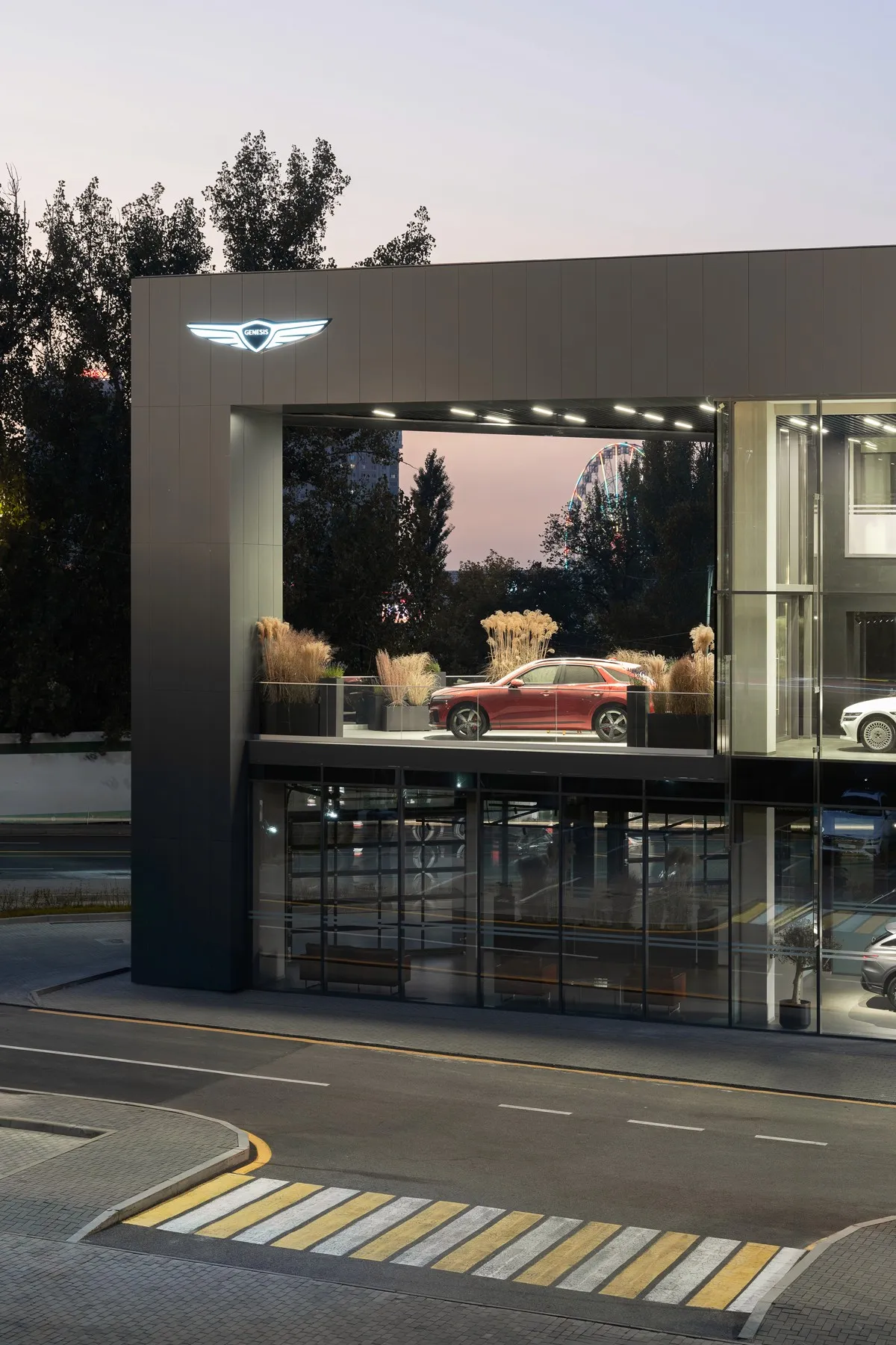 <div class="description">В этом проекте для автомобильного бренда Genesis мы исследовали, каким может быть современный автосалон. Пространство построено вокруг идеи полного сосредоточения на продукте: все второстепенные элементы сведены к минимуму, чтобы внимание привлекалось к автомобилю — его форме, инженерному совершенству и дизайну. Темная палитра и чистая геометрия подчеркивают точность и создают атмосферу спокойной концентрации.</div>