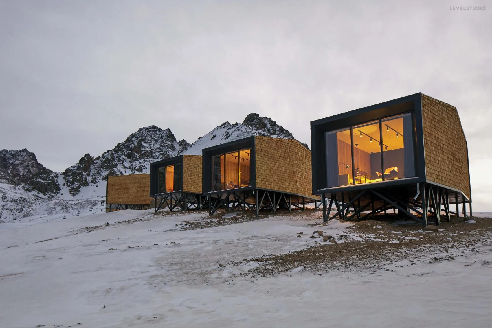 Адрес: Высота 3200, Горный курорт Шымбулак, Алматы <br> Год: 2020 <br> Статус: завершен <br> Площадь: 434м² <br> <br> Модульный глэмпинг на высоте 3200м в горнолыжном курорте Шымбулак. <br> <br> Смотрите видео на <a href= https://vimeo.com/530193482 target=_blank>Vimeo</a>.