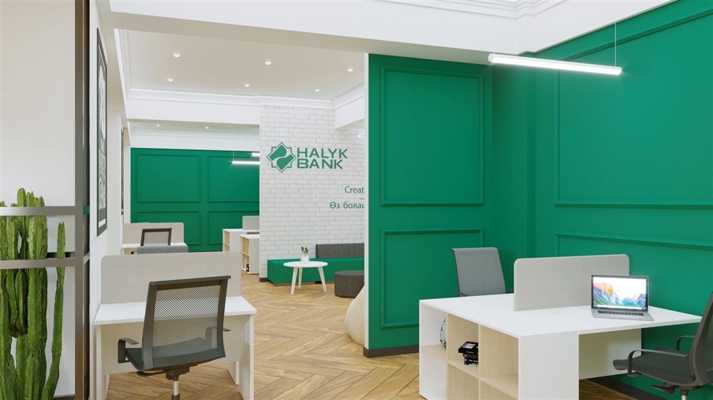Задача была поставлена не из простых, так как здание находится под охраной государства, как исторический памятник, внутренний интерьер сохранился в первозданном виде, в декоре здания и отделке интерьеров использована классическая ордерная система, переработанные формы национального зодчества и мотивы народного искусства. Все это диктовало определённые направления для разработки дизайн-проекта. Было выбрано направление в неоклассическом стиле, чтобы подчеркнуть исторический интерьер, но привнести в него современные нотки, а также связать корпоративный стиль Halyk Bank с их насыщенным зеленым цветом воедино. Зонирование планировалось таким образом, чтобы каждый студент мог подобрать для работы оптимальное именно для него рабочее пространство (работа в одиночном стиле или в команде при обсуждении общих идей).