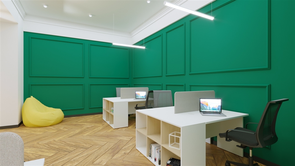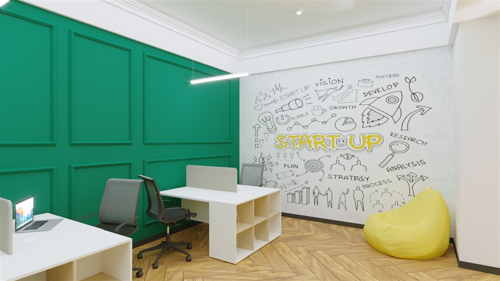 Дизайн коворкинга получился яркий, неординарный и запоминающийся.