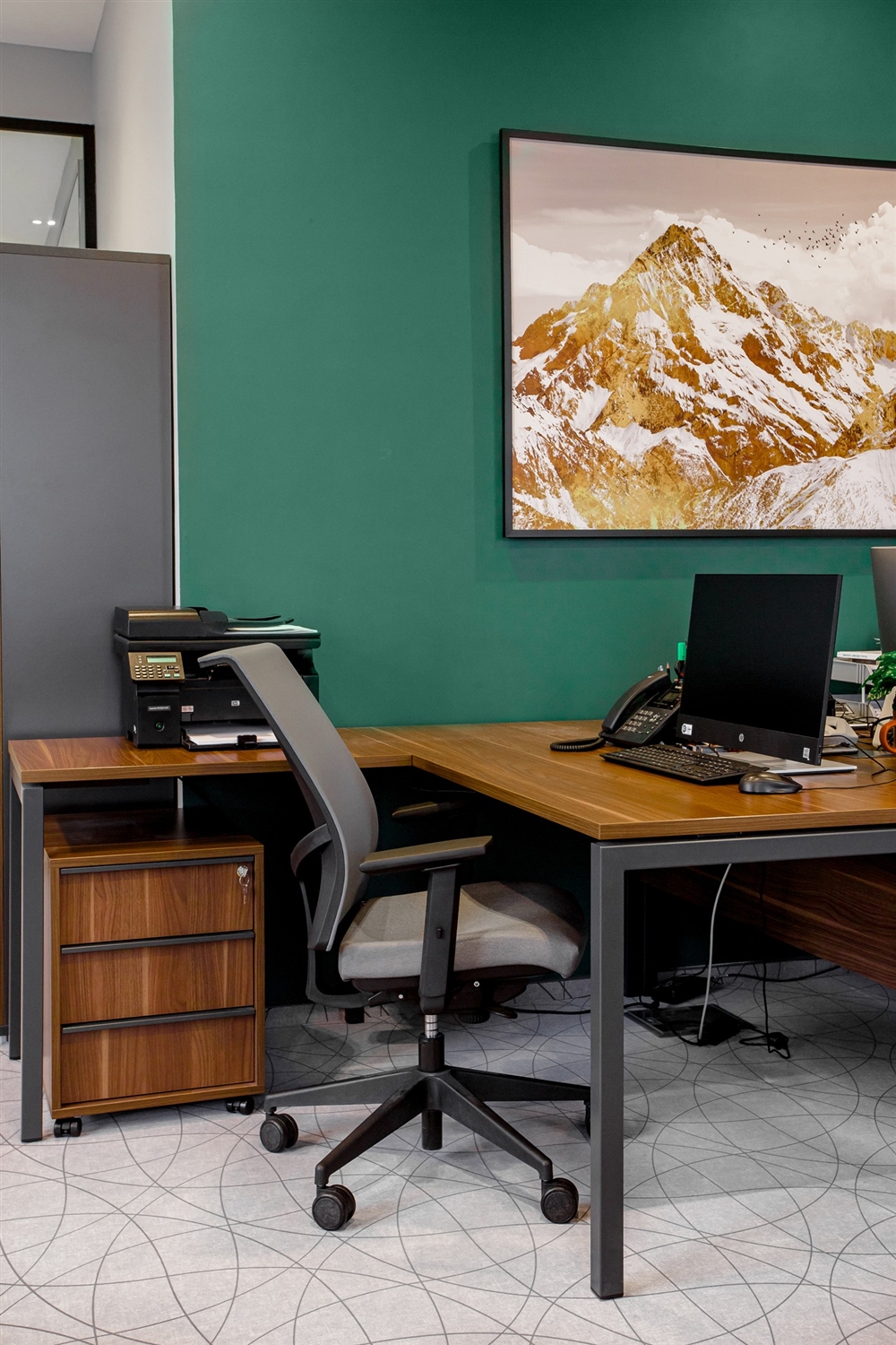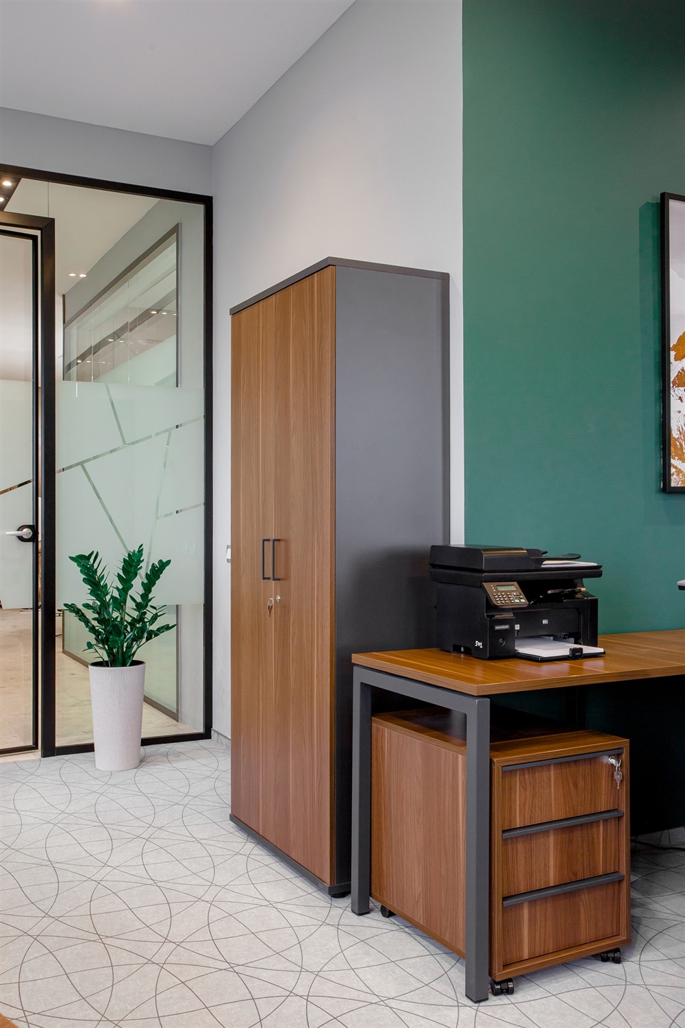 Одним из таких проектов стал офис для логистической компании. Интерьер офиса был реализован в коллаборации с дизайн-студией «AMALI Design», где они выступали дизайнерами проекта, а наша компания «V-time Object Office», являлась идейным вдохновителем при подборе корпусной мебели для сотрудников, а также мебели для руководителей и напольных решений.