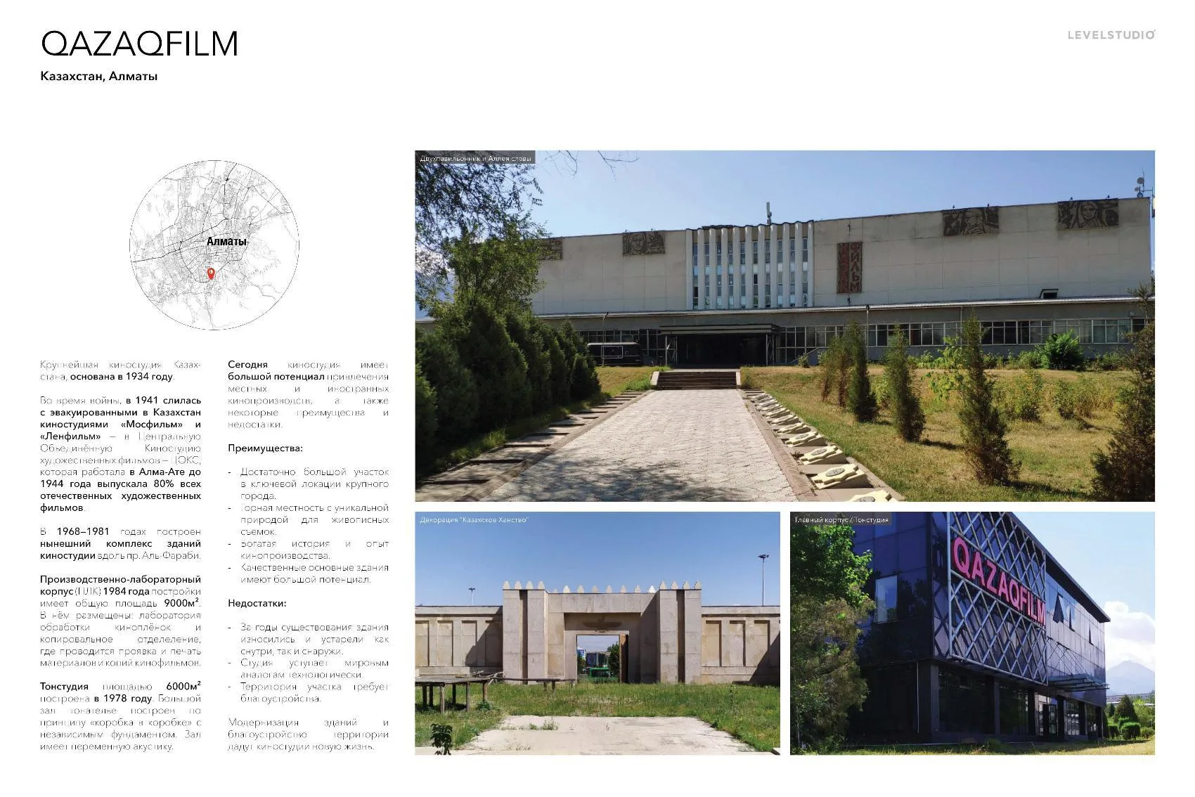 Адрес: Алматы <br> Год: 2020 <br> Статус: форэскизный проект <br> Площадь: 16.5га <br> <br> Реконструкция и модернизация сердца Казахстанского кинематогрофа.