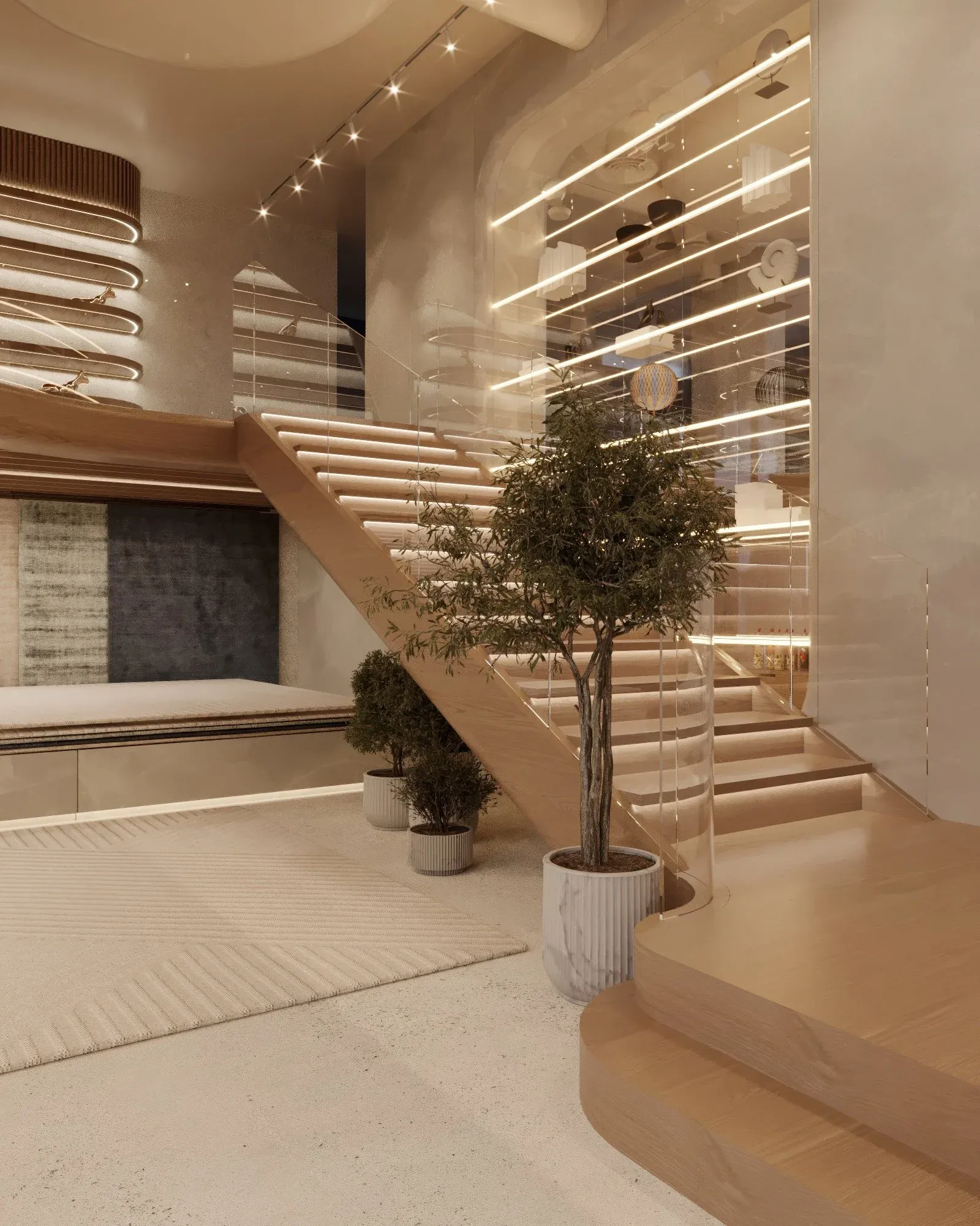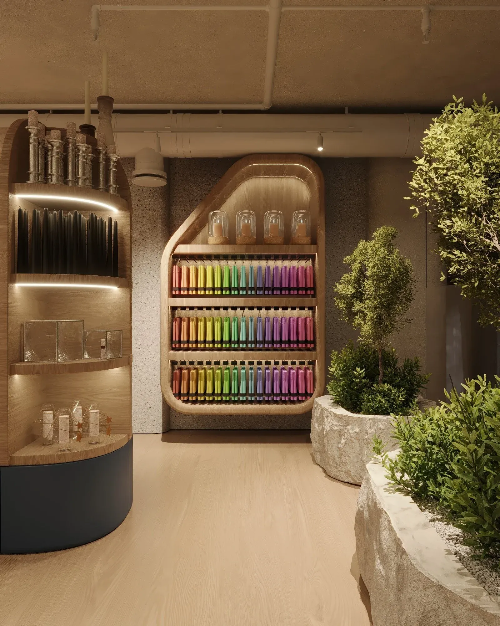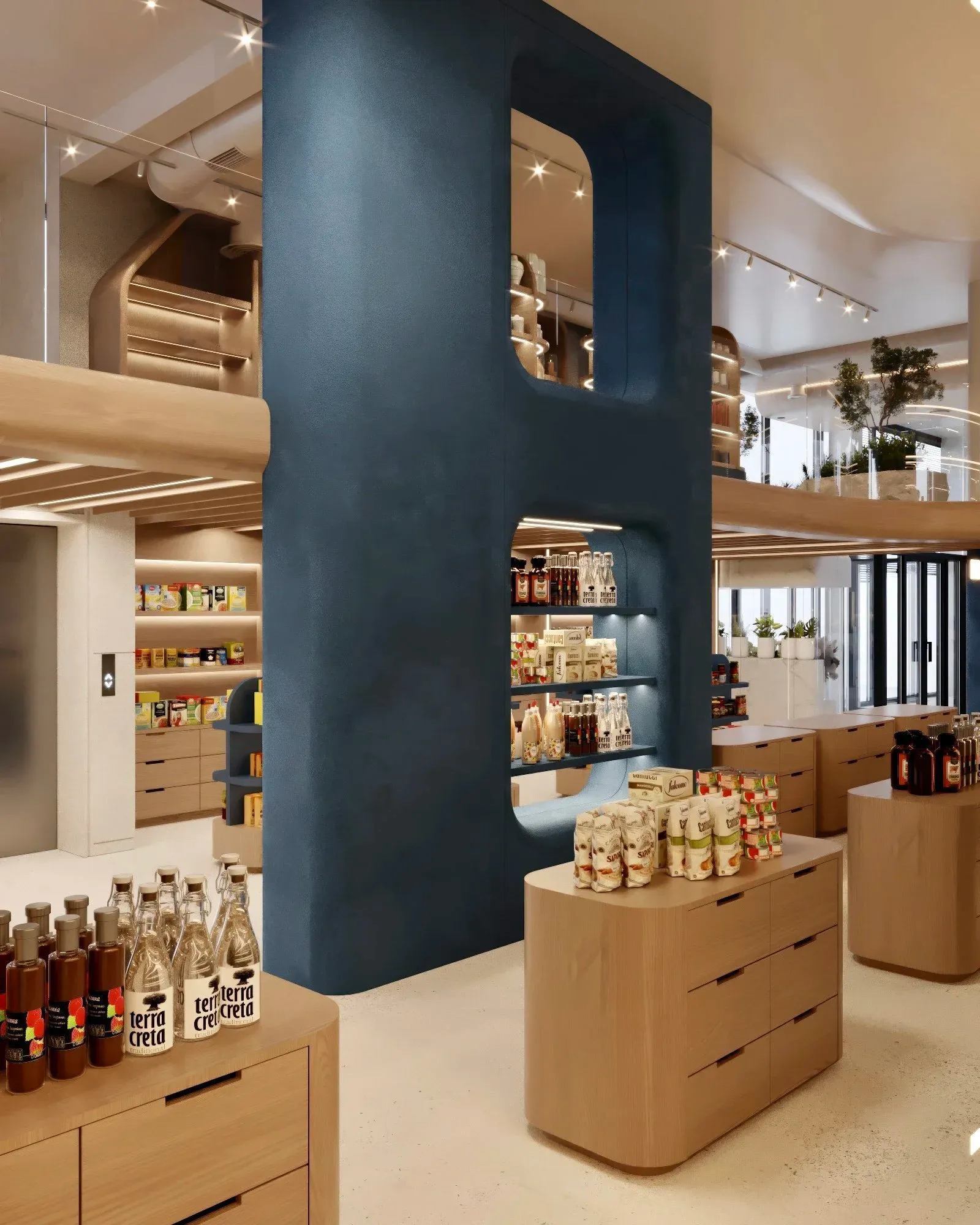 <div class="description">ARTHURS / AСТАНА Типология: коммерческое пространство Локация: Астана, Казахстан Площадь: 842 м² Сектор: коммерческий Arthurs - это больше, чем магазин. Это стильное многофункциональное пространство, объединяющее винную библиотеку, гастрономическую зону, коллекцию для сервировки и декора, ковры и предметы освещения. Центральным акцентом стал атриум с круглым островком и башней из брендированных коробок - ядро сервиса упаковки. Здесь создают подарочные наборы и корзины «под ключ», превращая Arthurs в первую ассоциацию для жителей Астаны, когда нужен по-настоящему хороший подарок. Эффектная лестница, задуманная как фотогеничный арт-объект, сезонно декорируется и становится символом пространства. Интерьер, наполненный теплом натуральных материалов и мягкими цветовыми акцентами, продуман до мелочей - от зон персонала и складов до кухни винного отдела. Каждая деталь создаёт атмосферу уюта и вдохновения, а сам концепт Arthurs формирует новый формат городской культуры покупок и встреч.</div>
