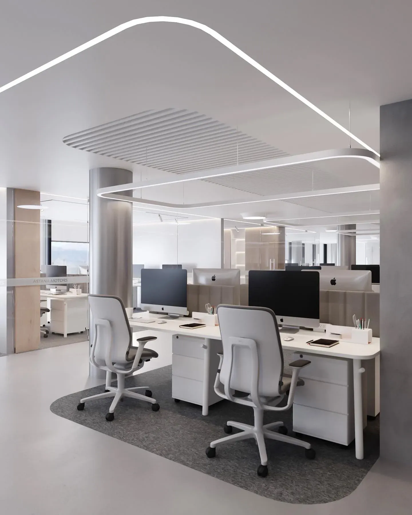 <div class="description">Typology: Commercial space Location: Almaty, Kazakhstan Built area: 1200 m2 Sector: Сommercial ОФИС ASTANA MOTORS Тип: Коммерческое помещение Местоположение: г. Алматы, Казахстан Площадь: 1200 m2 Сектор: Коммерческий Проект интерьера офиса Astana Motors в торговом центре Mega отражает современность, функциональность и комфорт. Это двухэтажное пространство с атриумом в его центре, создающее открытое и просторное место для работы и взаимодействия. Офисное пространство разделено на зоны, предназначенные для различных компаний, чтобы обеспечить удобство и конфиденциальность. Каждая из этих зон оформлена, учитывая индивидуальные особенности компаний, при этом сохраняется общий стиль и эстетика. В использованных материалах и отделке преобладает современный стиль, включая синее стекло как основной акцент и металлические элементы, придающие интерьеру энергичность и динамичность. Особое внимание уделяется освещению для создания комфортной и эргономичной рабочей обстановки, а также для подчеркивания архитектурных деталей и интерьерных акцентов. Помещения для встреч разрабатываются с учетом комфорта и функциональности, с использованием современной мебели и технологий, чтобы обеспечить эффективные рабочие встречи. Конференц-зал представляет собой просторное помещение, оборудованное передовой техникой для успешных презентаций, конференций и семинаров.</div>