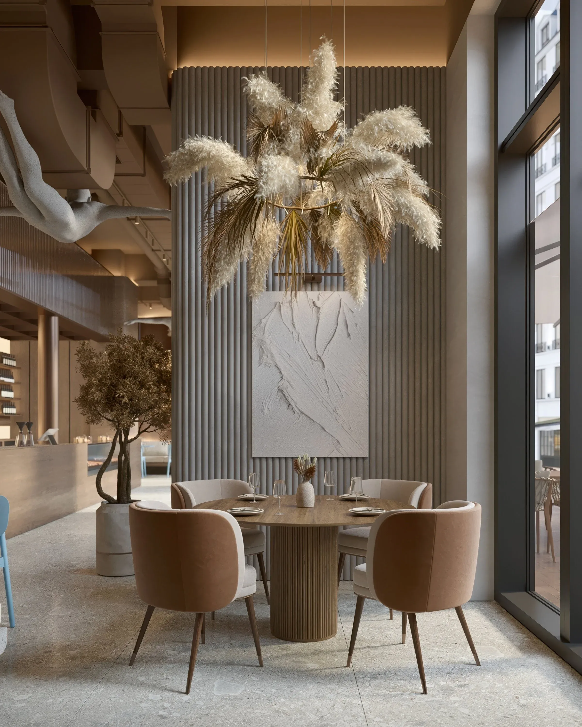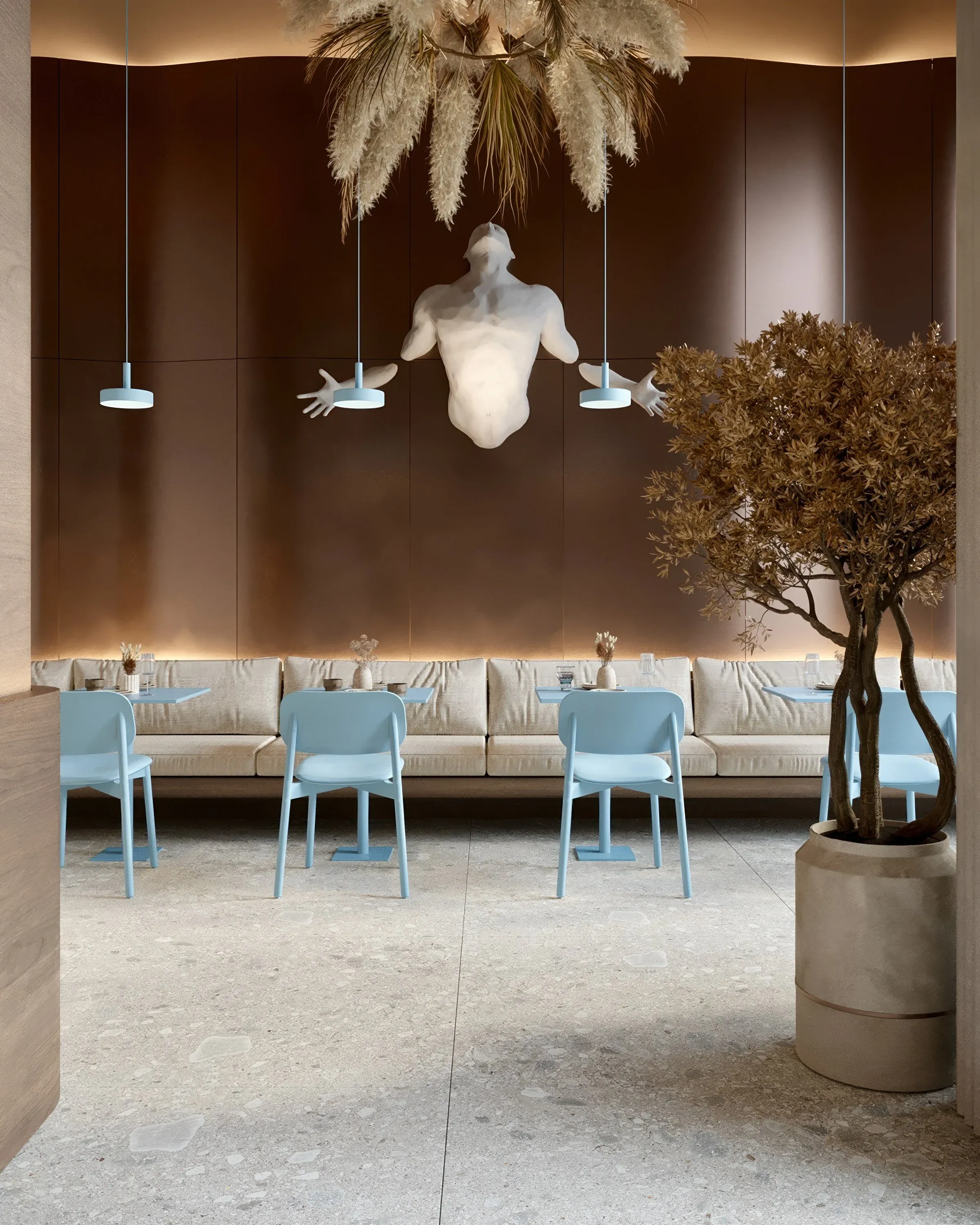 <div class="description">Типология: городское кафе Локация: Алматы, Казахстан Площадь: 180 м² Сектор: HoReCa Проект городского кафе от Lenz в одном из самых уникальных уголков Алматы. Тщательно подобранные натуральные материалы дополняются мягким голубым цветом, а антропоморфизм, отражающий актуальный тренд в дизайне, придаёт заведению особый характер.</div>