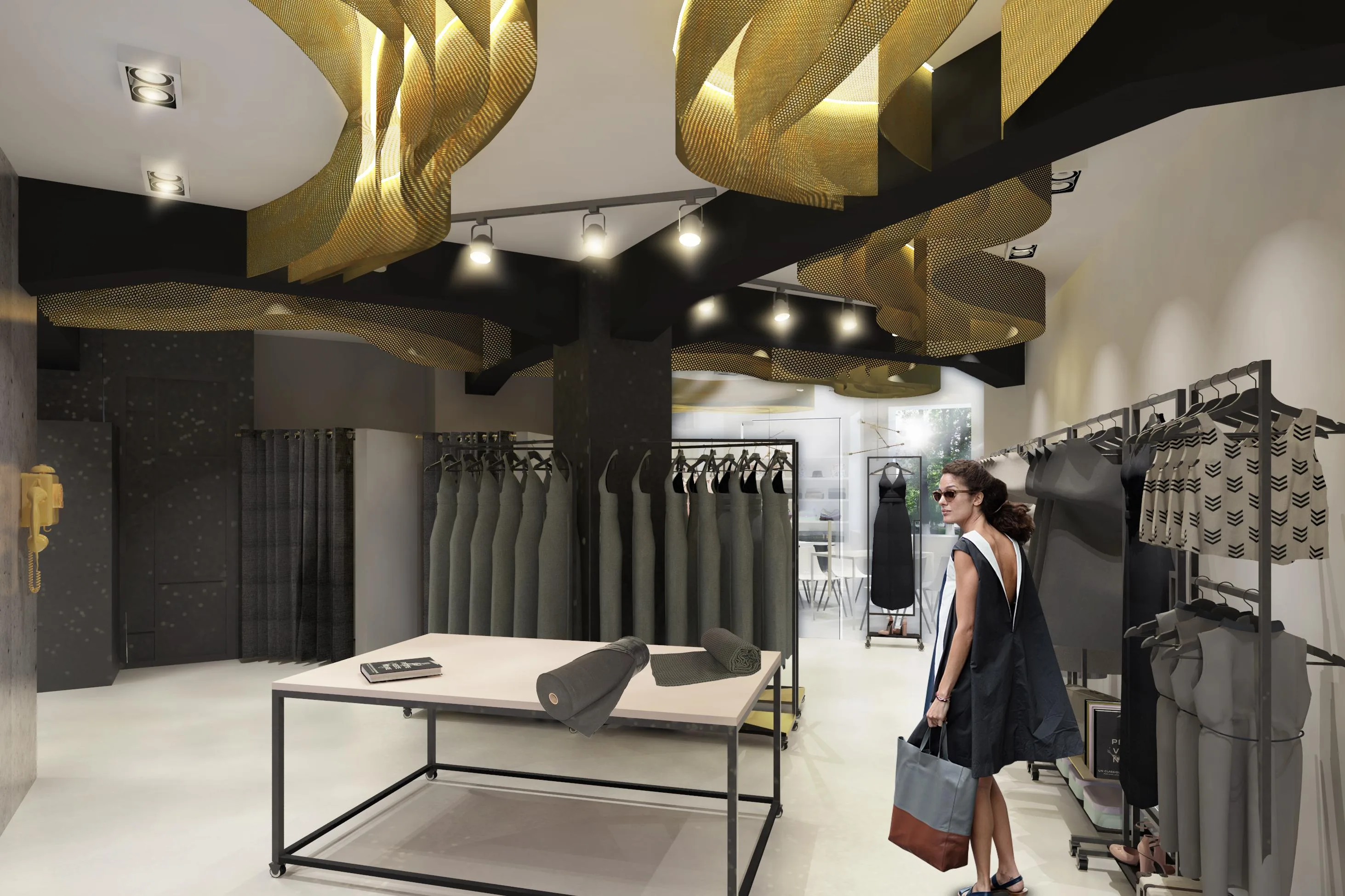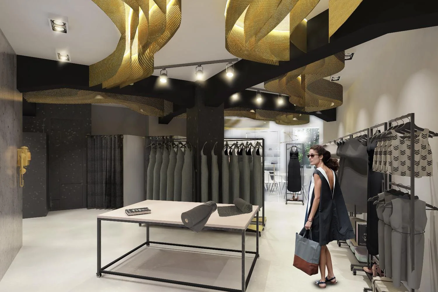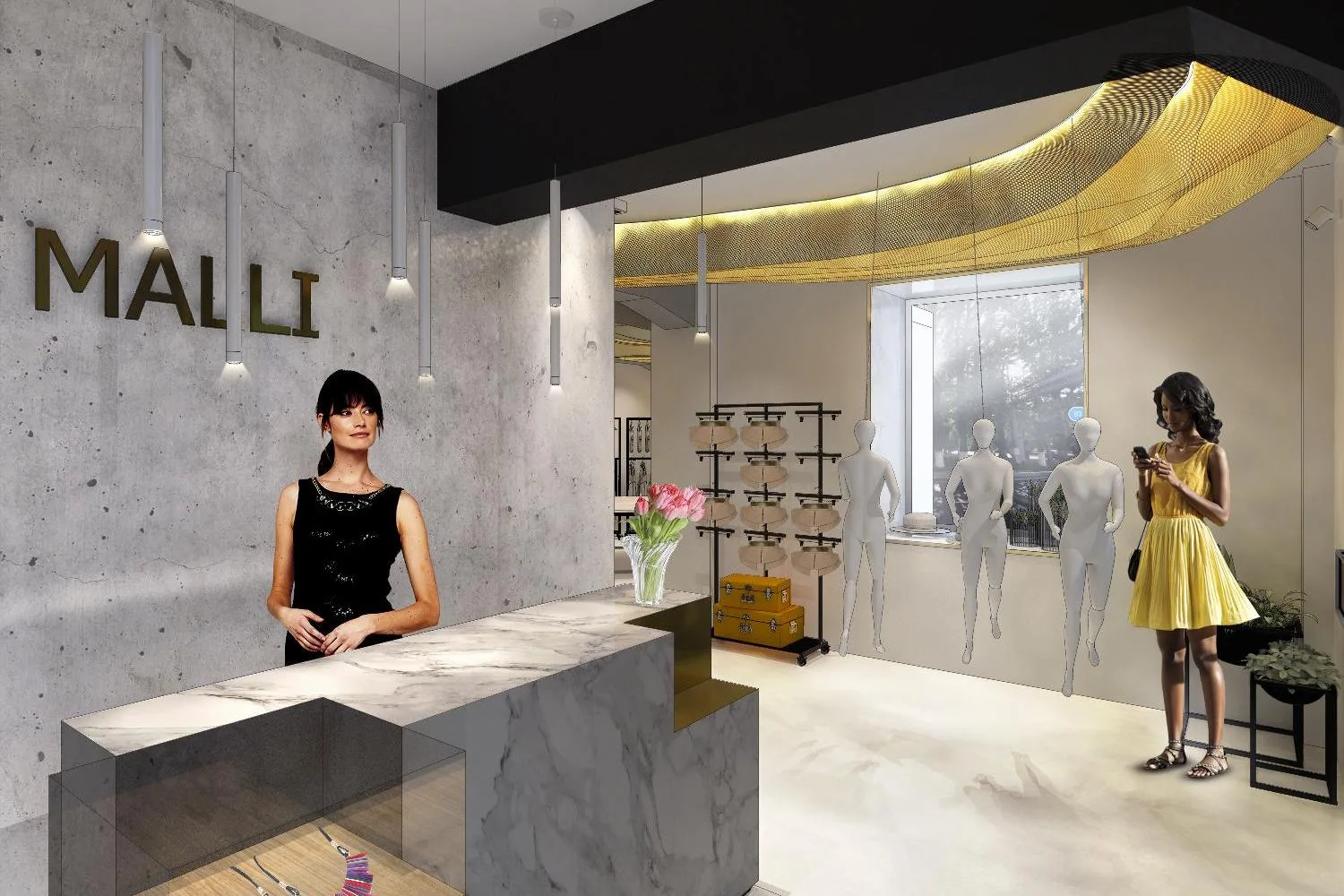 Объект: Malli<br> Адрес: г.Алматы, Кабанбай Батыра 104.<br> Описание: Дизайн проект интерьера бутика.