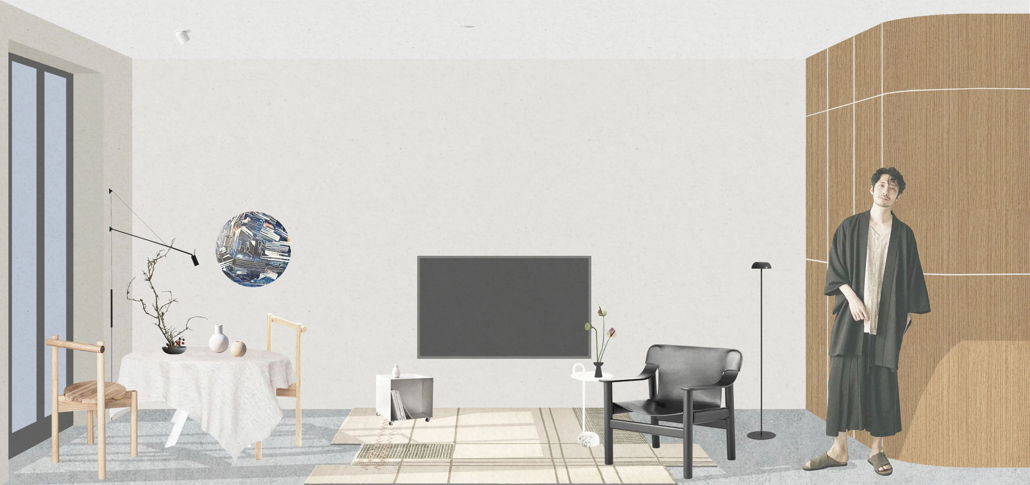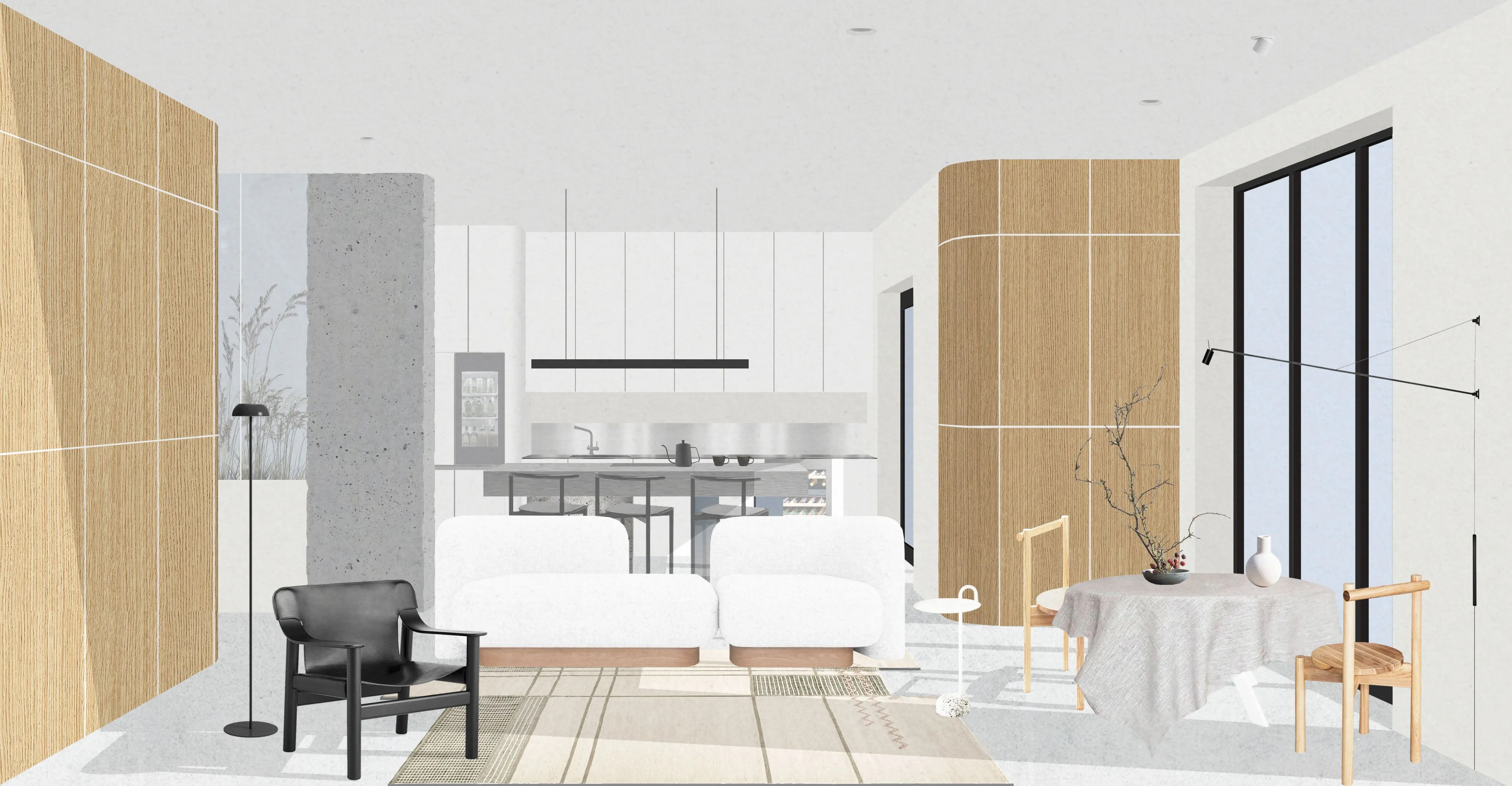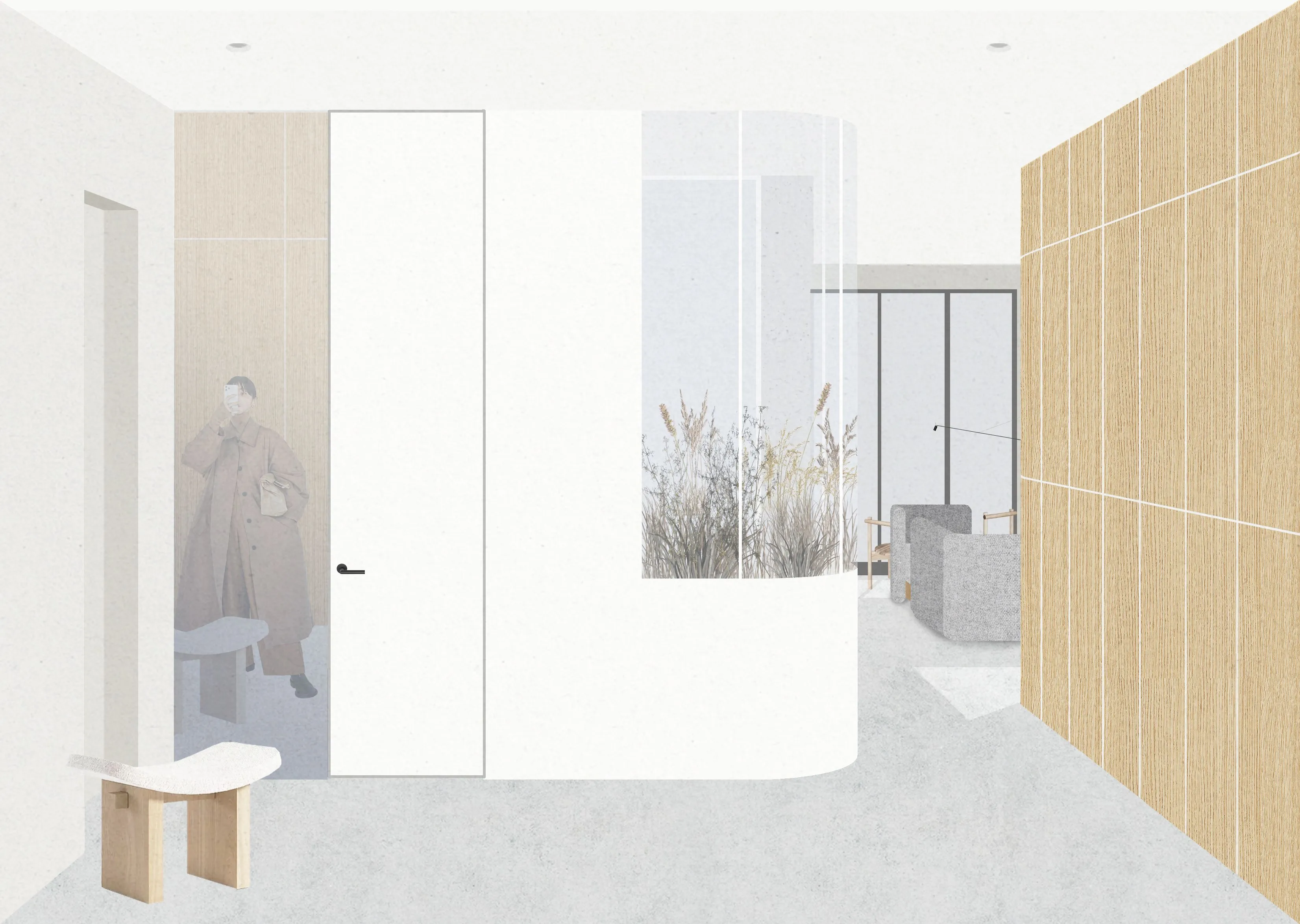 <div class="description">Интерьер квартиры оказался таким же, как внутреннее состояние клиентов - чистым, светлым, свободным и естественным. Любовь владельцев к природе отражена в использовании текстурированных материалов спокойных оттенков. Это придает интерьеру уникальный характер и создает ощущение единства с окружающей средой. Нержавеющая сталь, открытый бетон, фанерованный МДФ, декоративная текстурированная штукатурка и фанера - каждый материал выбран за его естественную текстуру и цвет. Теплые полы и микробетон позволяют ходить босиком по дому, наслаждаясь прикосновением натуральных материалов, как в Японии, где возник минимализм и стал основой для этого проекта. Все хранилища скрыты в индивидуальных шкафах, сохраняя линии простыми и делая пространство визуально чище. Используя локализованные направленные светильники, мы подчеркиваем интересные детали, такие как картины и рельеф бетонной колонны, создавая уникальные сценарии и придавая пространству камерное и музейное ощущение. Еще одним акцентным элементом дизайна является радиальная стеклянная перегородка, за которой мы размещаем высокие сухие деревья, которые можно расставить в зависимости от настроения. Мы очень рады помочь нашим клиентам открыть себя, создавая пространства, в которых им комфортно жить.</div>