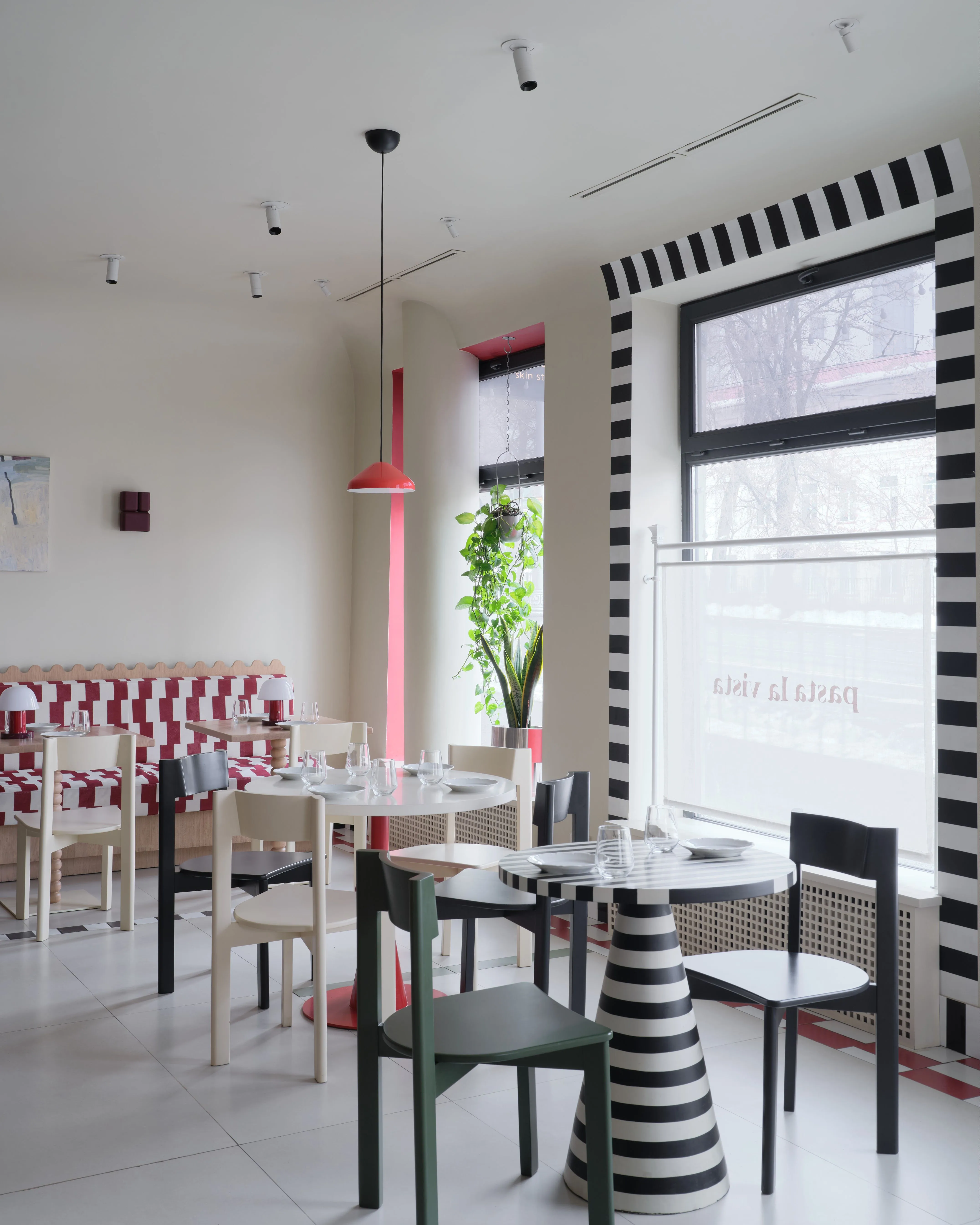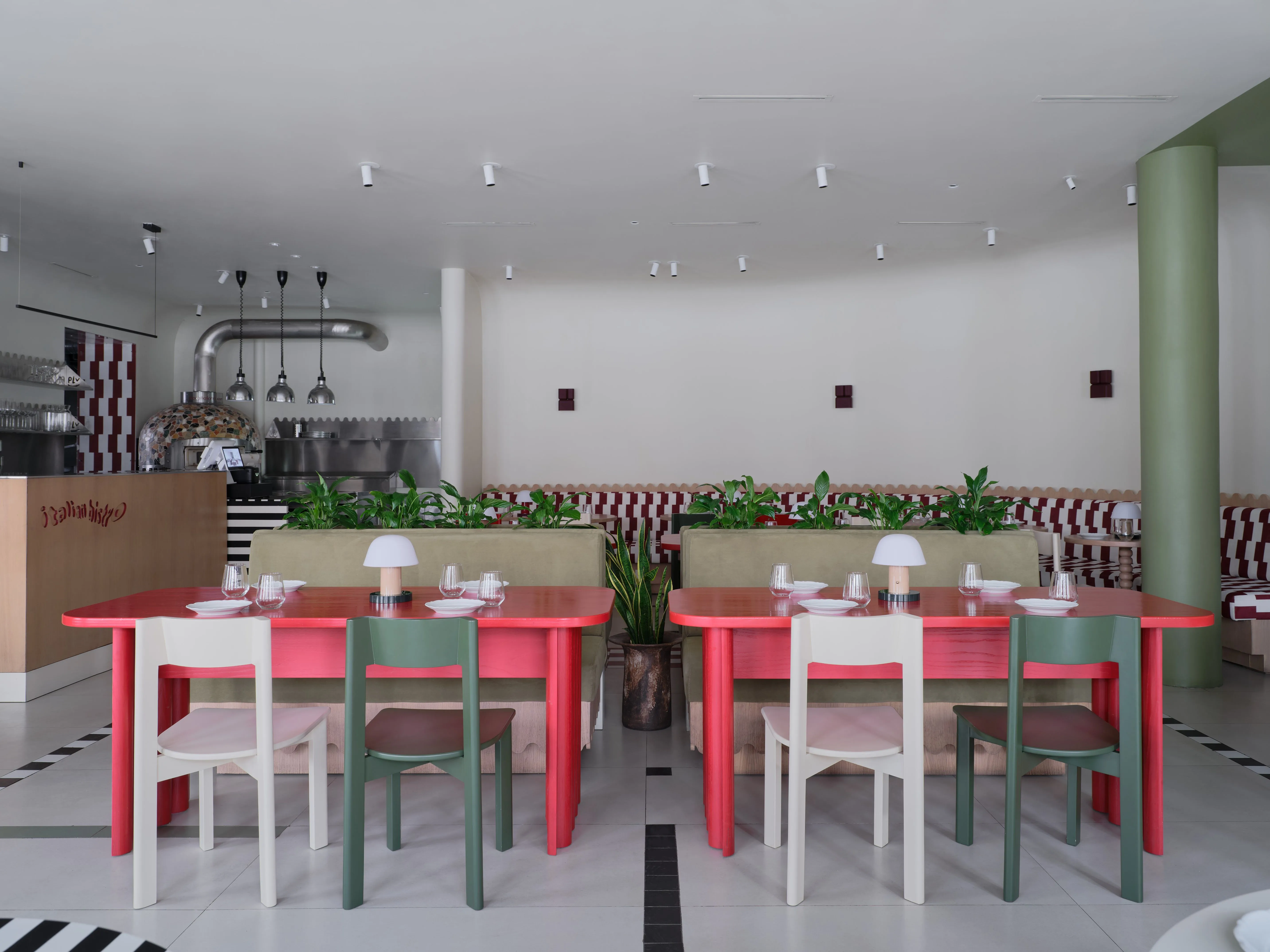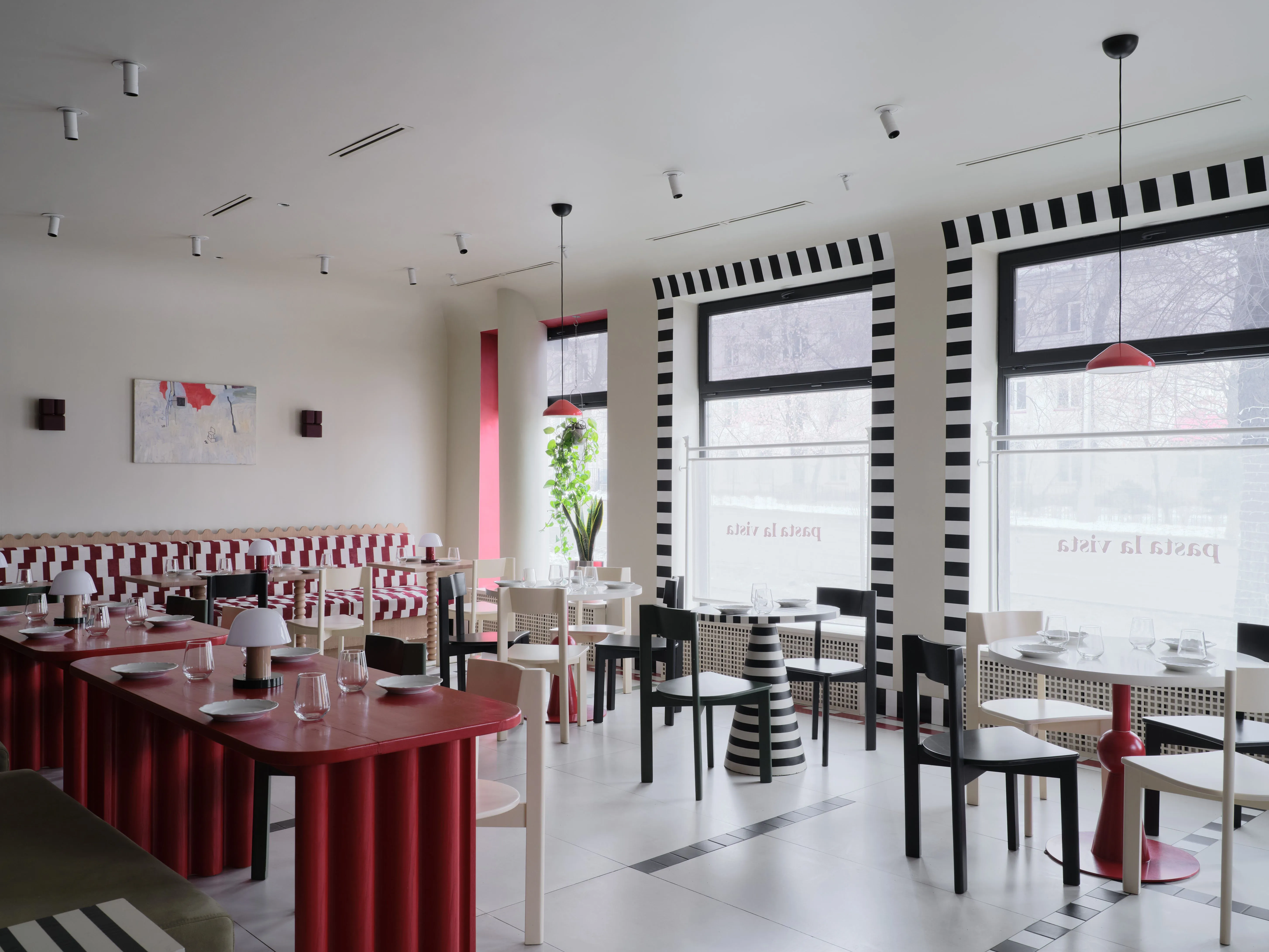 <div class="description">Pasta La Vista — это яркое итальянское бистро, предлагающее уютный и расслабляющий опыт питания. Дизайн интерьера излучает игривое очарование, с яркими шахматными и полосатыми узорами, дополненными палитрой ярких, живых цветов. Пространство тщательно подобрано, с индивидуальной, ручной мебелью, созданной исключительно местными ремесленниками, что добавляет атмосферу подлинности и мастерства. Это сочетание игривости и утонченности делает бистро прекрасным местом для легкого, дружеского обеда.</div>