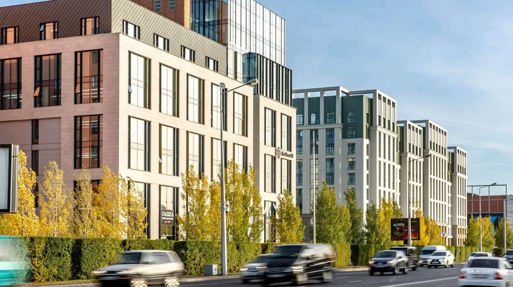 Sensata — бизнес-цент�� на улице Туран, который органично продолжает архитектурный ансамбль делового района Астаны и одновременно формирует собственный современный образ. Композиция здания стала отправной точкой для создания соседнего жилого комплекса Sensata, поддерживая единый стиль развития квартала. INK Architects разработали архитектуру, интерьеры и систему освещения общественных зон, что позволило создать цельное и последовательное пространство. Строгая кубическая геометрия, чистые линии и акцент на динамике форм отражают характер современного бизнес-пространства и подчёркивают актуальный минималистичный язык архитектуры.