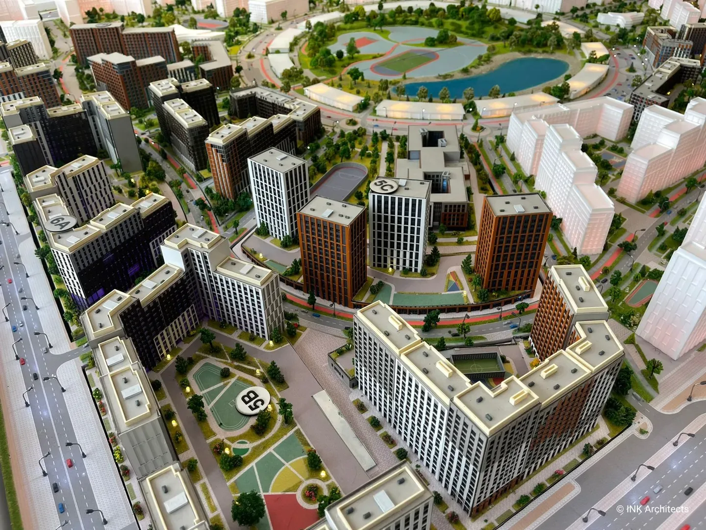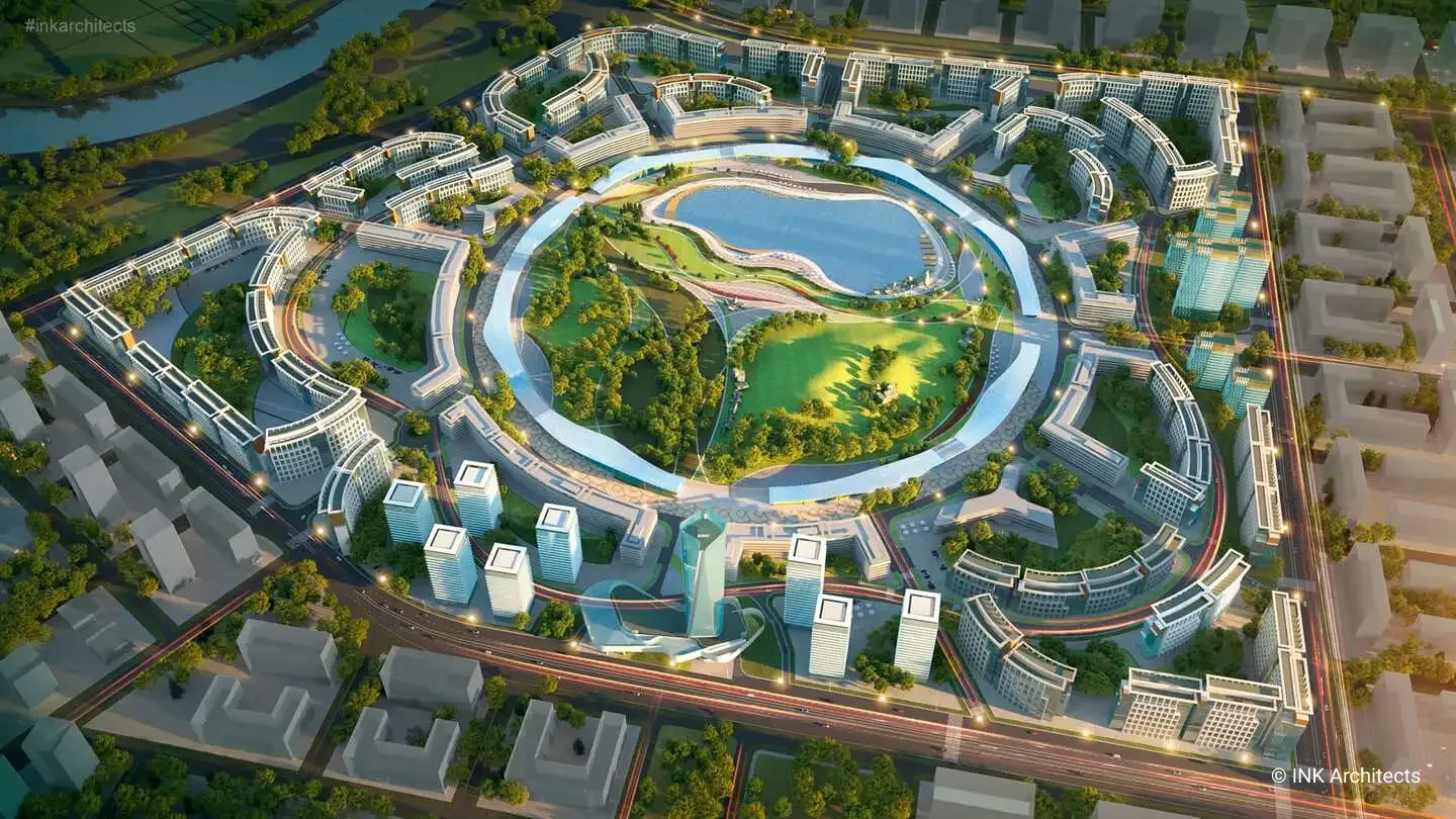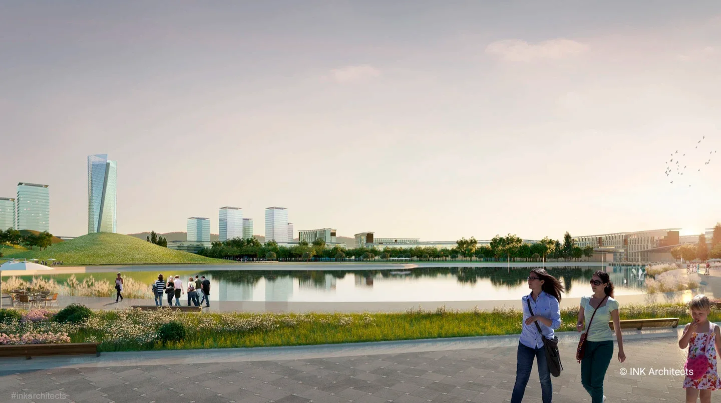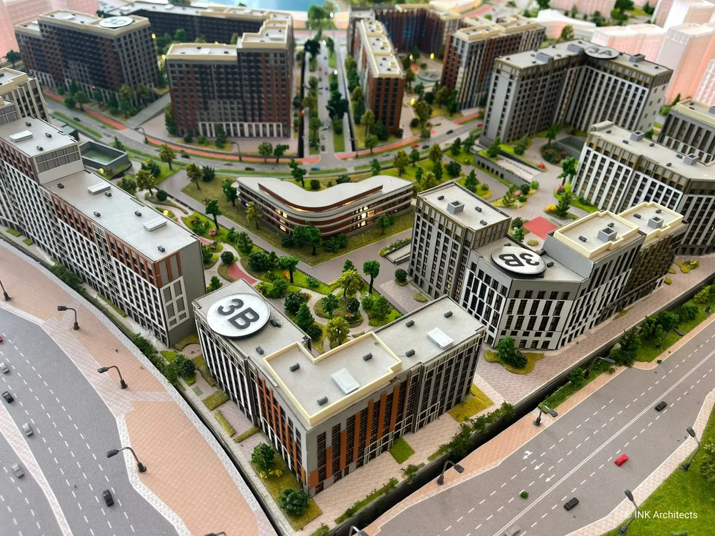 Уникальный в своём роде концепт города в городе — жилой район площадью 86,64 Га Capital Park расположился в самом сердце Астаны и включает в себя жилые комплексы для 23 тысяч жителей, 35 этажный бизнес-центр, коммерческие зоны площадью более, чем 100 тысяч квадратных метров, 4 школы, 10 детских садов, 13 тысяч парковочных мест, а также уникальную в своем роде парковую зону. Главной концепцией района стала разработка его центральной части — огромного живописного зеленого парка, вдохновением для которого послужили 3 основных природных богатства Казахстана. Горы, озера и леса заняли треть всего участка и воплотились в уникальной идее создания собственного комфортного микроклимата в Capital City Park, чему было уделено особое внимание архитекторов. Озеро является естественным источником влажного воздуха и легкого бриза, а холмы и леса создают благоприятное движение воздушных потоков и тенистые зоны для отдыха. И если проблема засушливого лета, была решена созданием комфортной парковой зоны, то такая проблема, как сильные ветра, особенно зимой, может быть решена только с помощью архитектурно-планировочных решений. Это являлось важнейшим из факторов при разработке структуры района. Учитывая инсоляцию и розу ветров, путем проектирования зданий разной этажности, высота которых уменьшается к центру, была создана уникальная урбанистическая территория, искусственно защищенная от агрессивной внешней среды. Центральная часть района, включая парк, коммерческие зоны и бульвары, является полностью пешеходной и не имеет доступа для проезда транспорта. Бульвар имеет уникальный дизайн покрытий и живописные сухие фонтаны. Закольцованная композиция коммерческих зданий и пешеходных, а также велосипедных дорожек позволило создать неповторимый ландшафтный дизайн для семейного отдыха и занятий спортом в искусственно созданной природной зоне в самом центре мегаполиса. Тему природы архитекторы продолжили в современной архитектуре с элементами бионики. Богатые сочетания цветово