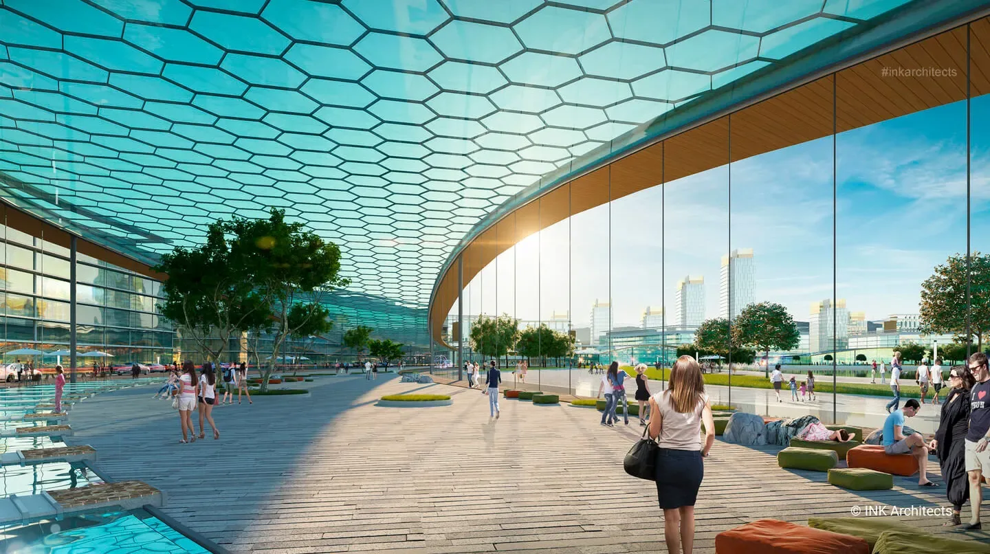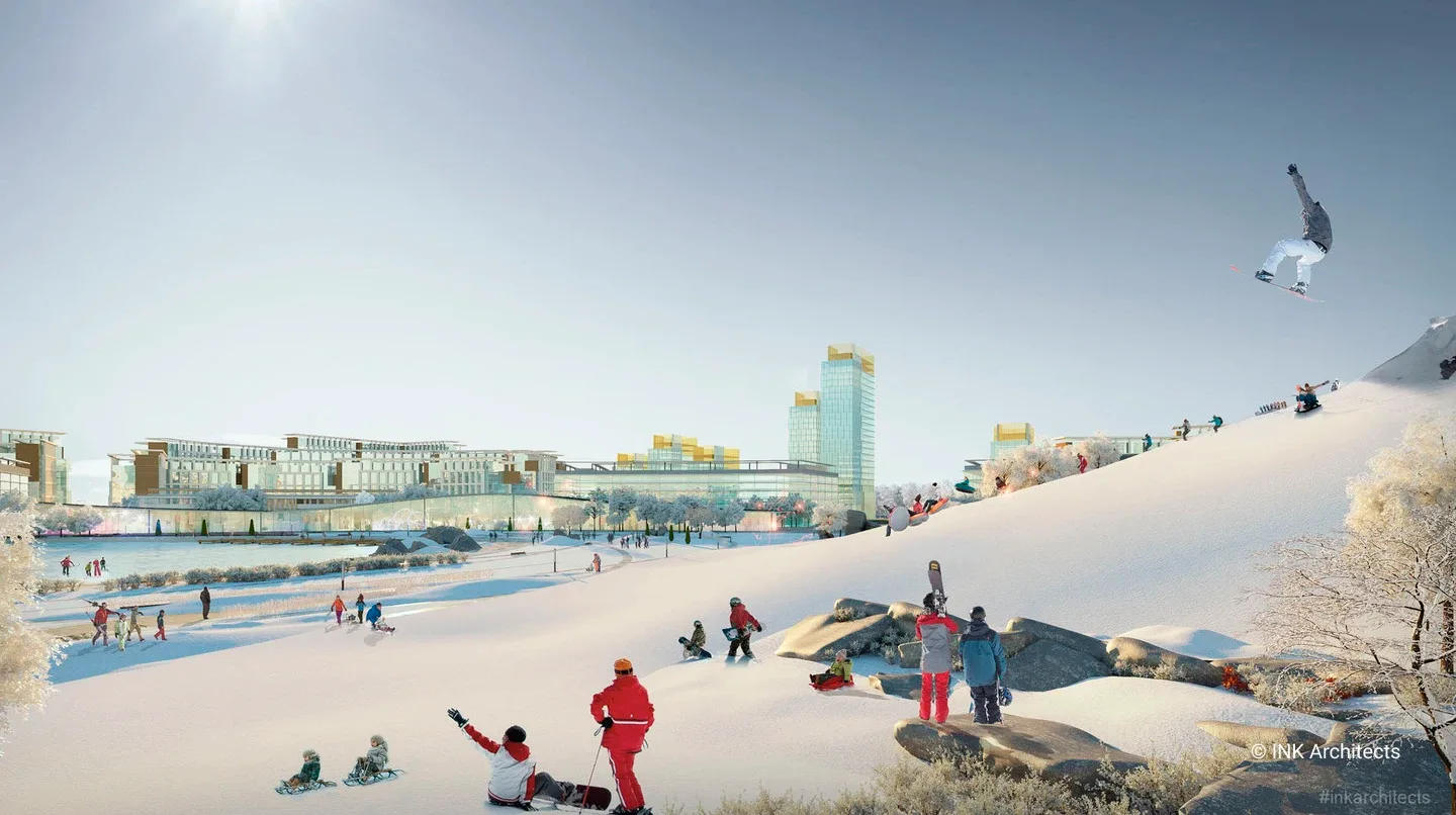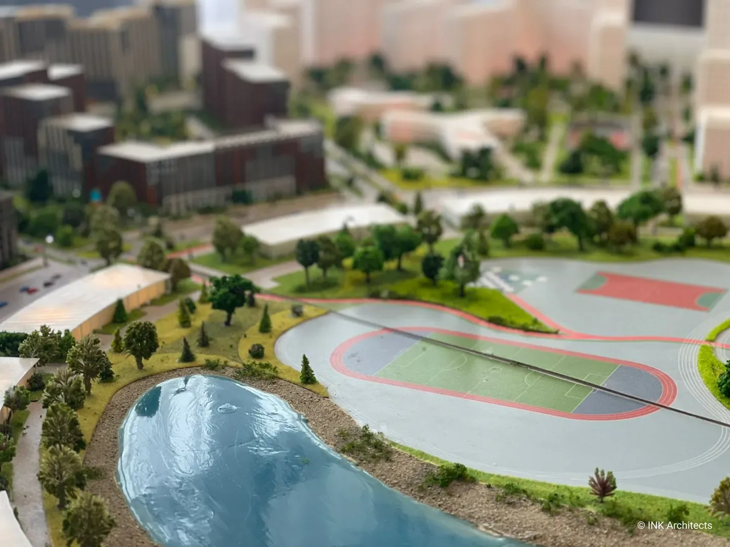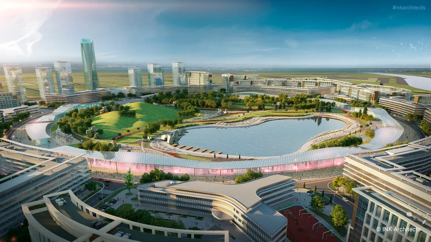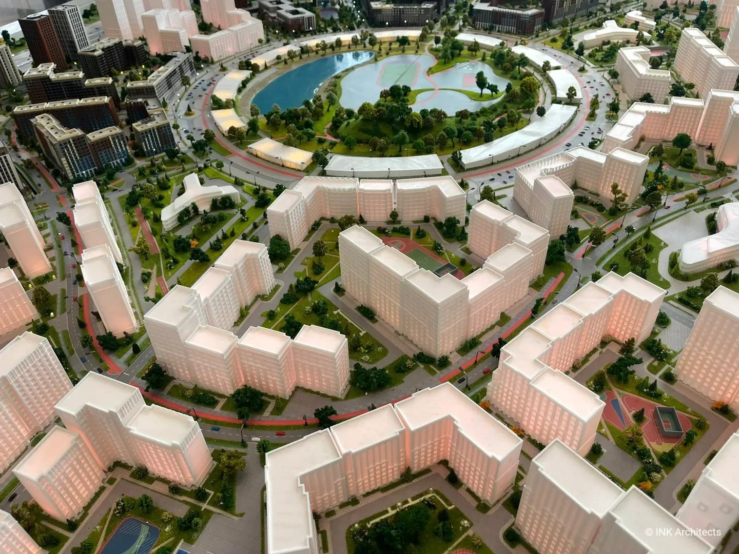 Уникальный в своём роде концепт города в городе — жилой район площадью 86,64 Га Capital Park расположился в самом сердце Астаны и включает в себя жилые комплексы для 23 тысяч жителей, 35 этажный бизнес-центр, коммерческие зоны площадью более, чем 100 тысяч квадратных метров, 4 школы, 10 детских садов, 13 тысяч парковочных мест, а также уникальную в своем роде парковую зону. Главной концепцией района стала разработка его центральной части — огромного живописного зеленого парка, вдохновением для которого послужили 3 основных природных богатства Казахстана. Горы, озера и леса заняли треть всего участка и воплотились в уникальной идее создания собственного комфортного микроклимата в Capital City Park, чему было уделено особое внимание архитекторов. Озеро является естественным источником влажного воздуха и легкого бриза, а холмы и леса создают благоприятное движение воздушных потоков и тенистые зоны для отдыха. И если проблема засушливого лета, была решена созданием комфортной парковой зоны, то такая проблема, как сильные ветра, особенно зимой, может быть решена только с помощью архитектурно-планировочных решений. Это являлось важнейшим из факторов при разработке структуры района. Учитывая инсоляцию и розу ветров, путем проектирования зданий разной этажности, высота которых уменьшается к центру, была создана уникальная урбанистическая территория, искусственно защищенная от агрессивной внешней среды. Центральная часть района, включая парк, коммерческие зоны и бульвары, является полностью пешеходной и не имеет доступа для проезда транспорта. Бульвар имеет уникальный дизайн покрытий и живописные сухие фонтаны. Закольцованная композиция коммерческих зданий и пешеходных, а также велосипедных дорожек позволило создать неповторимый ландшафтный дизайн для семейного отдыха и занятий спортом в искусственно созданной природной зоне в самом центре мегаполиса. Тему природы архитекторы продолжили в современной архитектуре с элементами бионики. Богатые сочетания цветово