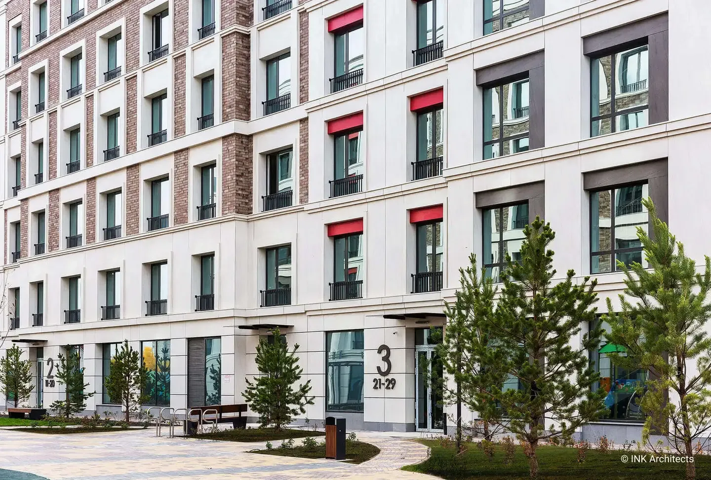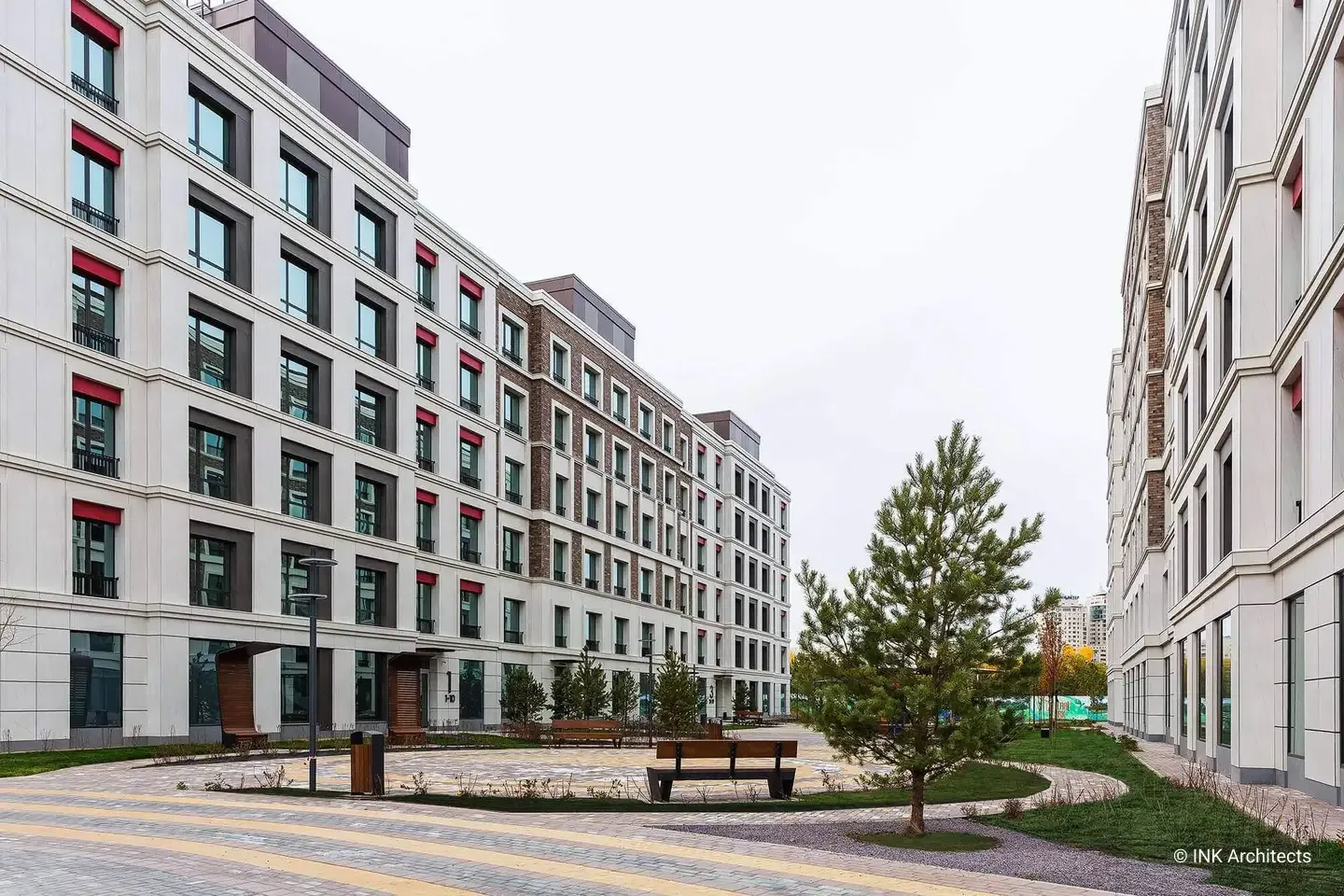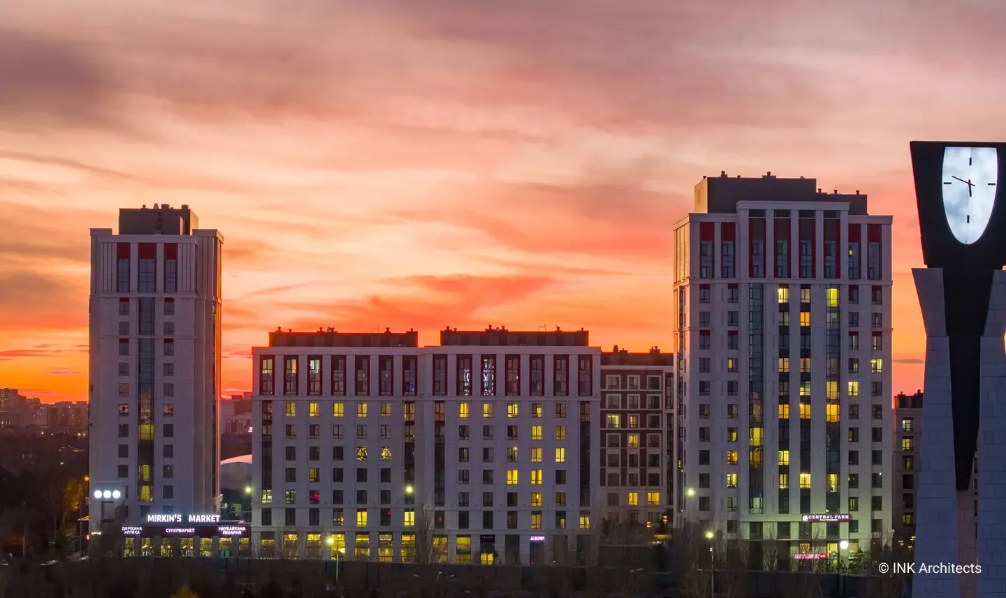 Central Park — жилой комплекс в сердце культурного центра Астаны, расположенный на закрытой благоустроенной территории площадью 5 гектаров. Проект включает 20 разновысотных блоков и формирует гармоничный городской ансамбль с обширными зелёными прогулочными зонами. Архитектурная концепция вдохновлена эстетикой американской классики, переосмысленной в современном контексте. Светлые фасады из камня и кирпича, крупные оконные проёмы и аккуратные акцентные элементы в серых и бордовых тонах создают элегантный и выразительный образ комплекса. Игра фактур и ритмичная структура фасадов подчёркивают статусность и визуальную чистоту архитектуры. В основе проектных решений — просторные планировки, эксплуатируемые кровли, современные инженерные системы и высокие стандарты безопасности. Central Park сочетает комфорт, приватность и развитую инфраструктуру, предлагая жителям качественную среду для жизни в одном из центральных районов столицы.