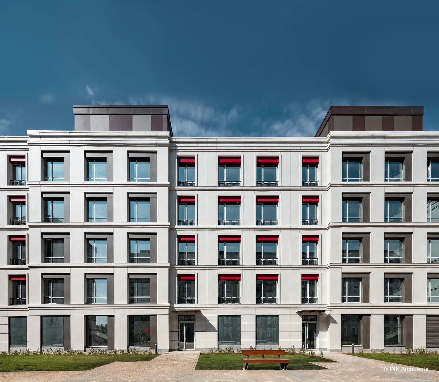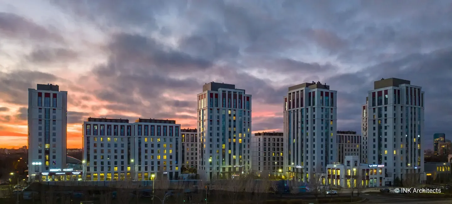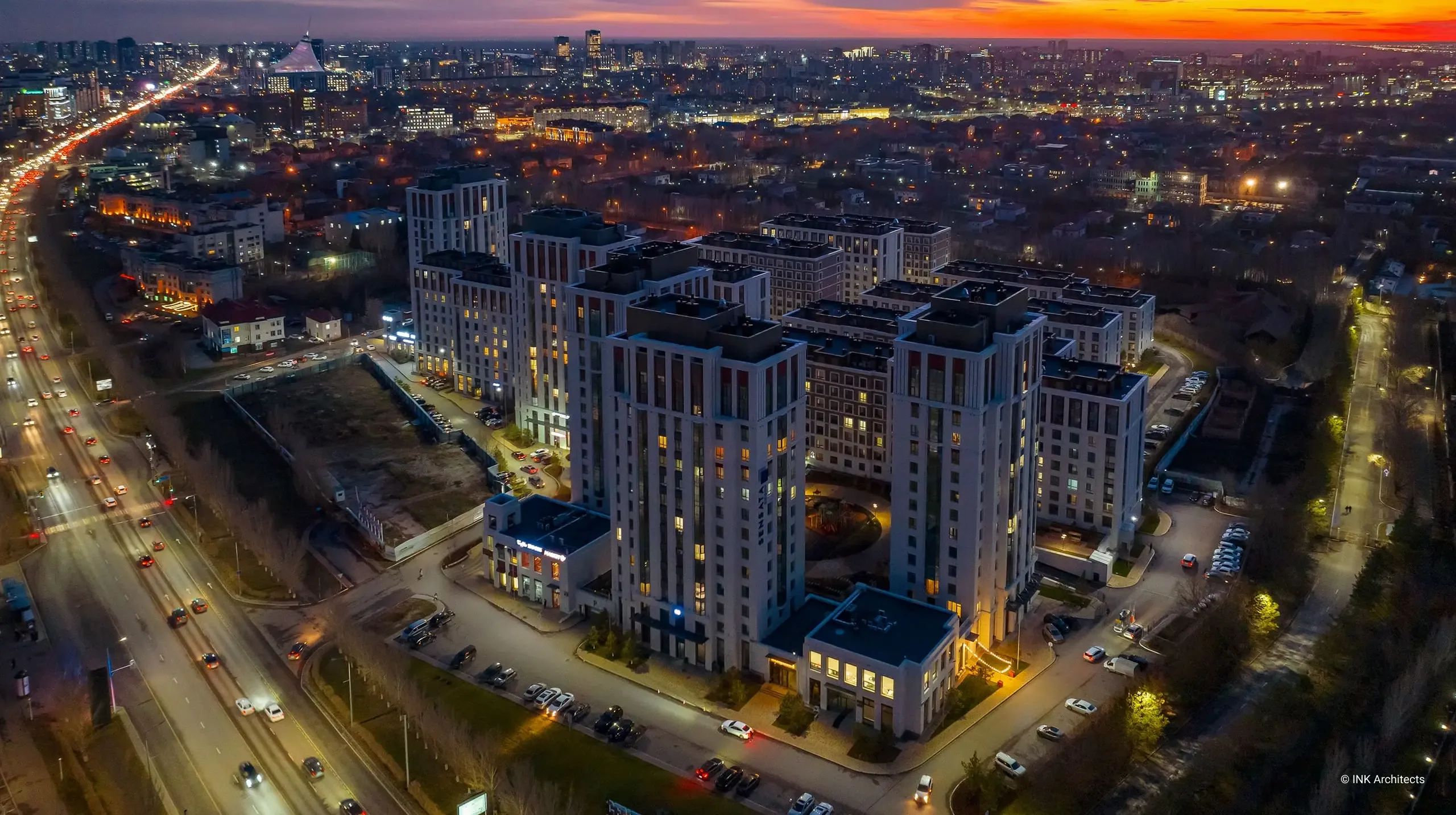 Central Park — жилой комплекс в сердце культурного центра Астаны, расположенный на закрытой благоустроенной территории площадью 5 гектаров. Проект включает 20 разновысотных блоков и формирует гармоничный городской ансамбль с обширными зелёными прогулочными зонами. Архитектурная концепция вдохновлена эстетикой американской классики, переосмысленной в современном контексте. Светлые фасады из камня и кирпича, крупные оконные проёмы и аккуратные акцентные элементы в серых и бордовых тонах создают элегантный и выразительный образ комплекса. Игра фактур и ритмичная структура фасадов подчёркивают статусность и визуальную чистоту архитектуры. В основе проектных решений — просторные планировки, эксплуатируемые кровли, современные инженерные системы и высокие стандарты безопасности. Central Park сочетает комфорт, приватность и развитую инфраструктуру, предлагая жителям качественную среду для жизни в одном из центральных районов столицы.
