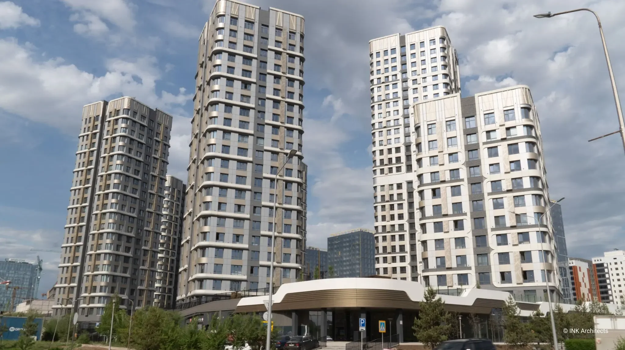 Nexpo Union — современный жилой комплекс, расположенный в новом деловом и культурном кластере столицы NEXPO, на пересечении проспекта Мангилик Ел и улицы Турара Рыскулова. Локация в окружении ключевых объектов EXPO — музея «Нур-Алем», МФЦА, IT University, бизнес-центров и Hilton Astana — формирует динамичную городскую среду мирового уровня. Архитектурная концепция вдохновлена природой Казахстана: формами барханов Алтын-Эмеля, очертаниями пещеры «Ак-Мечеть» и силуэтом останцев Онере. Эти мотивы переосмыслены в современной композиции из шести башен высотой от 12 до 28 этажей, объединённых волнообразным подиумом. Плавные линии кровли, перфорированные алюминиевые панели и горизонтальные членения фасадов создают характерный динамичный образ комплекса. Объёмно-пространственная структура отражает функциональную логику современного конструктивизма. Выразительные ризалиты, «короны» башен и тщательно выверенный ритм фасадов придают архитектуре масштабность и узнаваемость. Внутренняя среда Nexpo Union спроектирована для максимального комфорта жителей: удобные планировки, подземные паркинги, коммерческие зоны, благоустроенные дворы и продуманный ландшафт, создающий приватные тихие пространства в центре активного района. Nexpo Union — это сочетание динамичной архитектуры, вдохновлённой природой, и высокого качества городской жизни в одном из самых престижных районов Астаны.