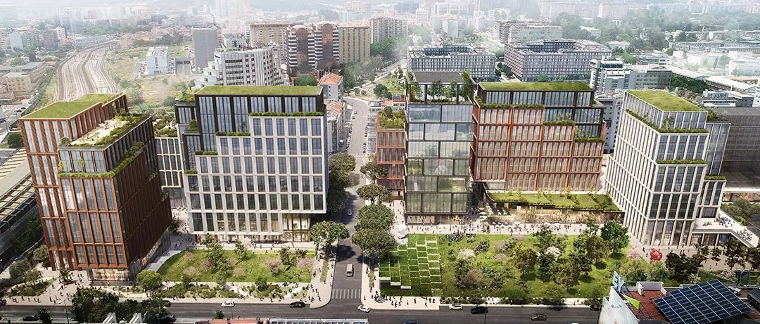 <div class="description"><p>Вдохновленный цветами и текстурами Лиссабона, этот проект, в партнерстве с KPF для Fidelidade, интегрирует офисные и коммерческие пространства, способствуя благополучию и амбициозным устойчивым целям. Коммерческие улицы, укоренившиеся в истории, формируют новый яркий центр. Фасад, состоящий из шести зданий, придает уникальную идентичность каждому. Привержен устойчивым практикам, которые позволяют получать экологические сертификаты и повышать качество жизни. Entrecampos символизирует эволюцию Лиссабона, где инновации и уважение к окружающей среде сосуществуют.</p></div>