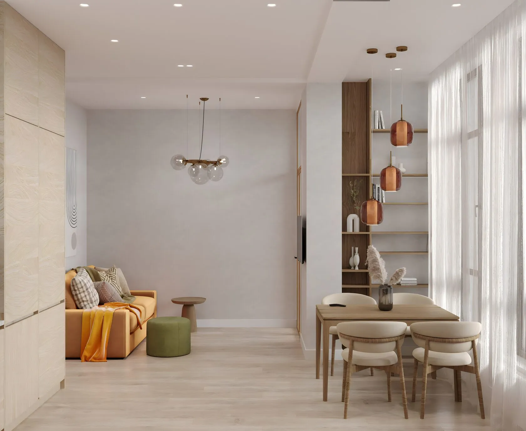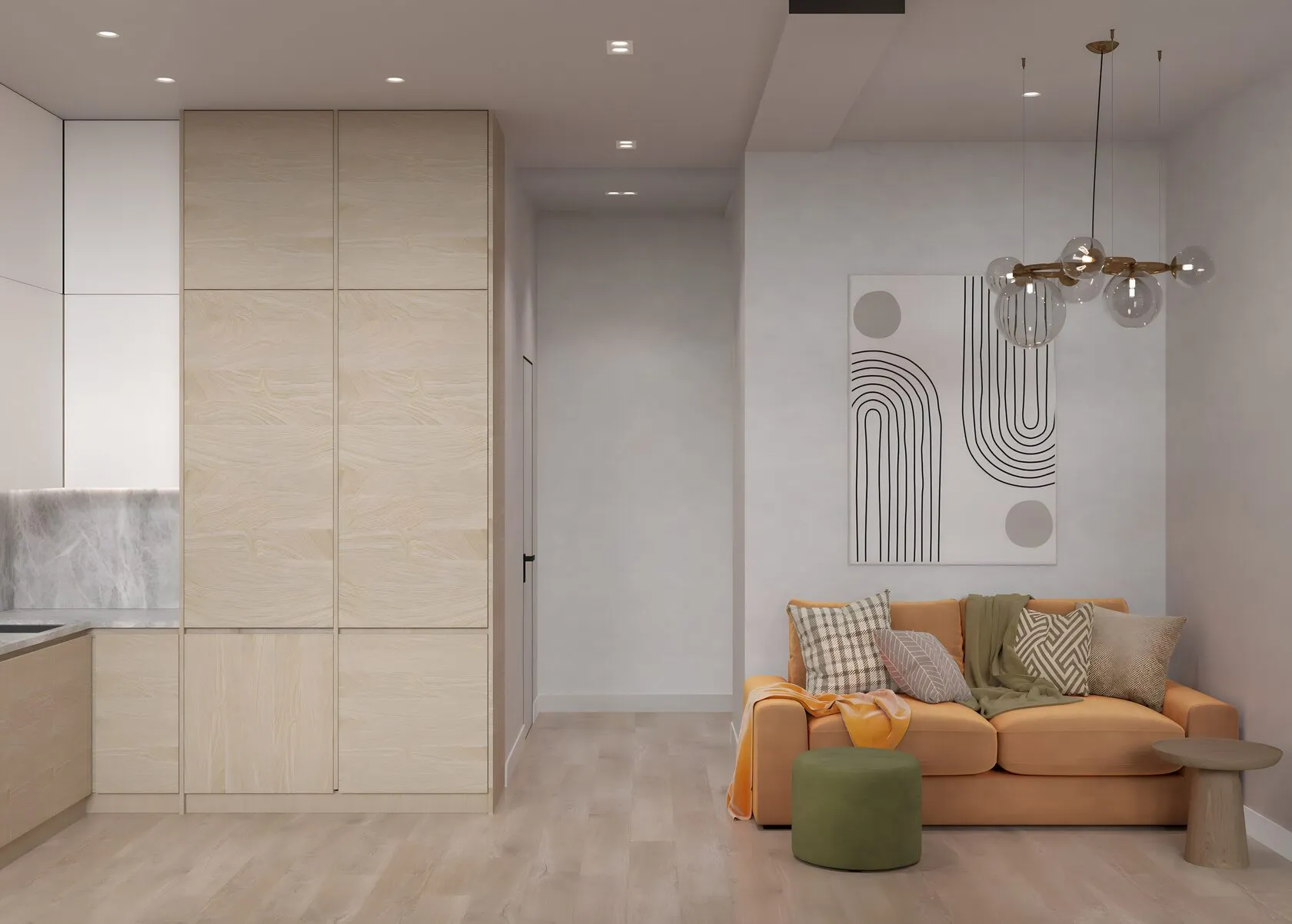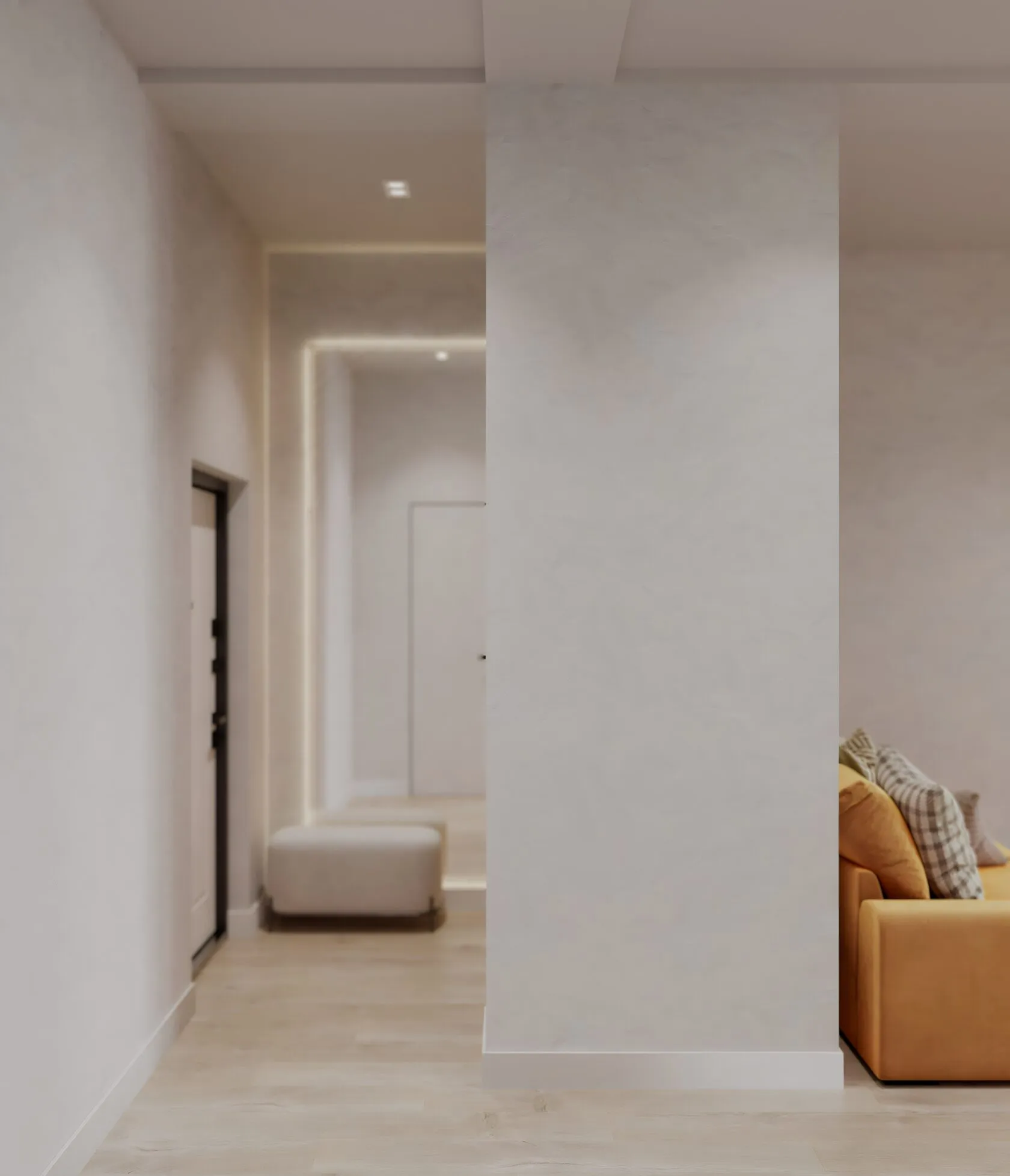 <div class="description">Дизайн-проект квартиры 50кв<br/><br/>Задача: создать уютный уголок для пожилой пары. Окна квартиры выходят на теневую сторону, поэтому квартира должна была быть максимально светлой и простой для возможности наполнять ее различными деталями</div>