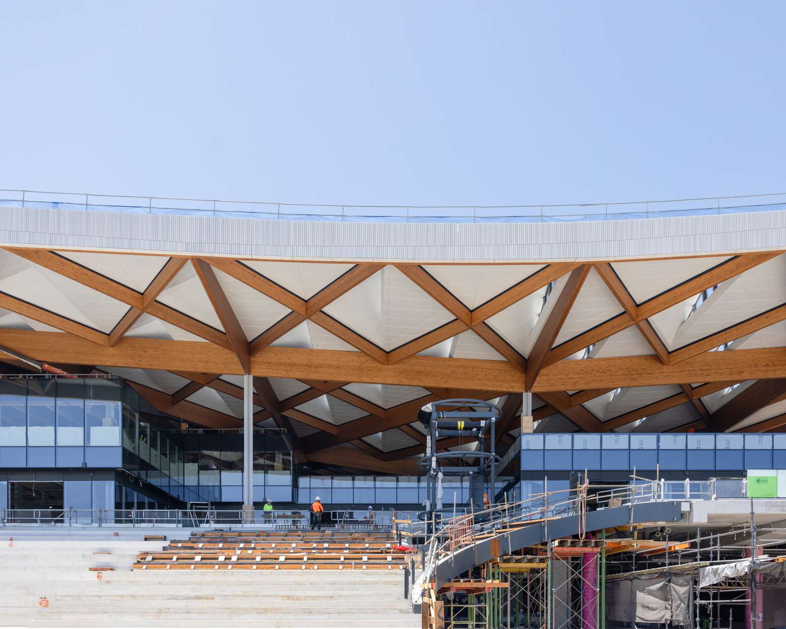 Крыша нового рыбного рынка Сиднея – центральный архитектурный элемент рынка. Она была разработана как комплексный устойчивый элемент, определяющий как выразительность, так и функциональность нового рынка. Таким образом, она воплощает в себе ряд принципов устойчивого развития, заложенных в коллективном проекте, посредством модульного блока – кассеты. Геометрия каждого блока спроектирована таким образом, чтобы отражать естественный свет в помещение и экранировать прямые лучи. Отдельные модули остаются проницаемыми для вентиляции пространства под ними за счет перепада давления. Блоки оснащены интегрированной дренажной системой для отвода и сбора дождевой воды, а также имеют модульную конструкцию, упрощающую строительство и ремонт.