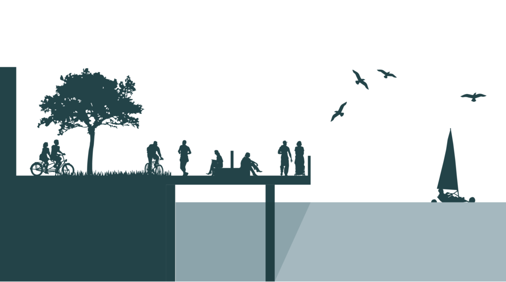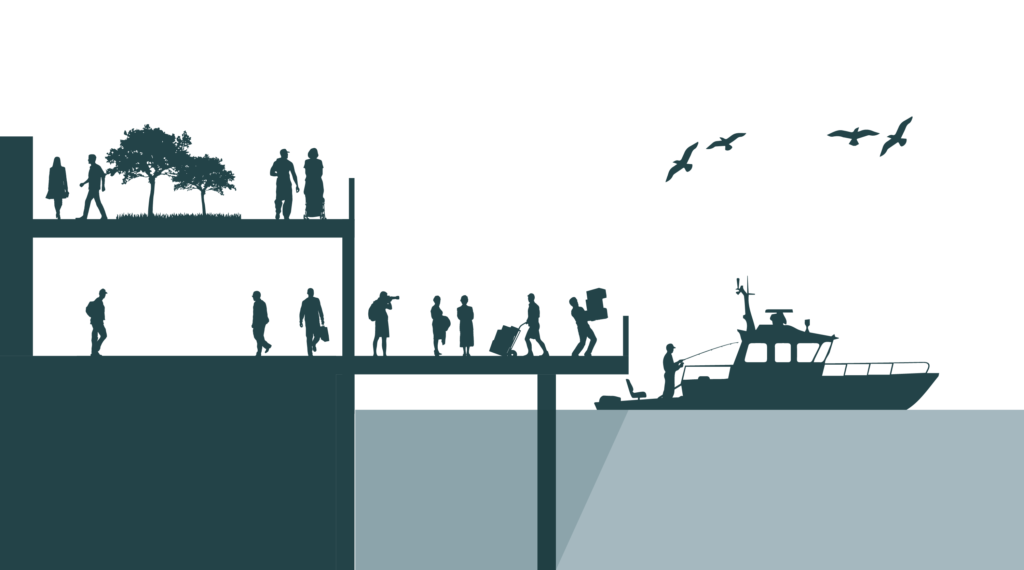 В основе концепции 3XN лежит интеграция публичного пространства и современной торговой зоны. Цель проекта — не позволить зданию нарушить связь с заливом, а, наоборот, сделать его катализатором для укрепления отношений между сообществом, местными жителями и водой. Проект расширяет и интегрирует прибрежный променад, который охватывает весь объект. Амфитеатральные лестницы ведут от площадей прямо к общественному рынку, продолжая окружающий ландшафт и открывая новый публичный маршрут вдоль кромки воды.