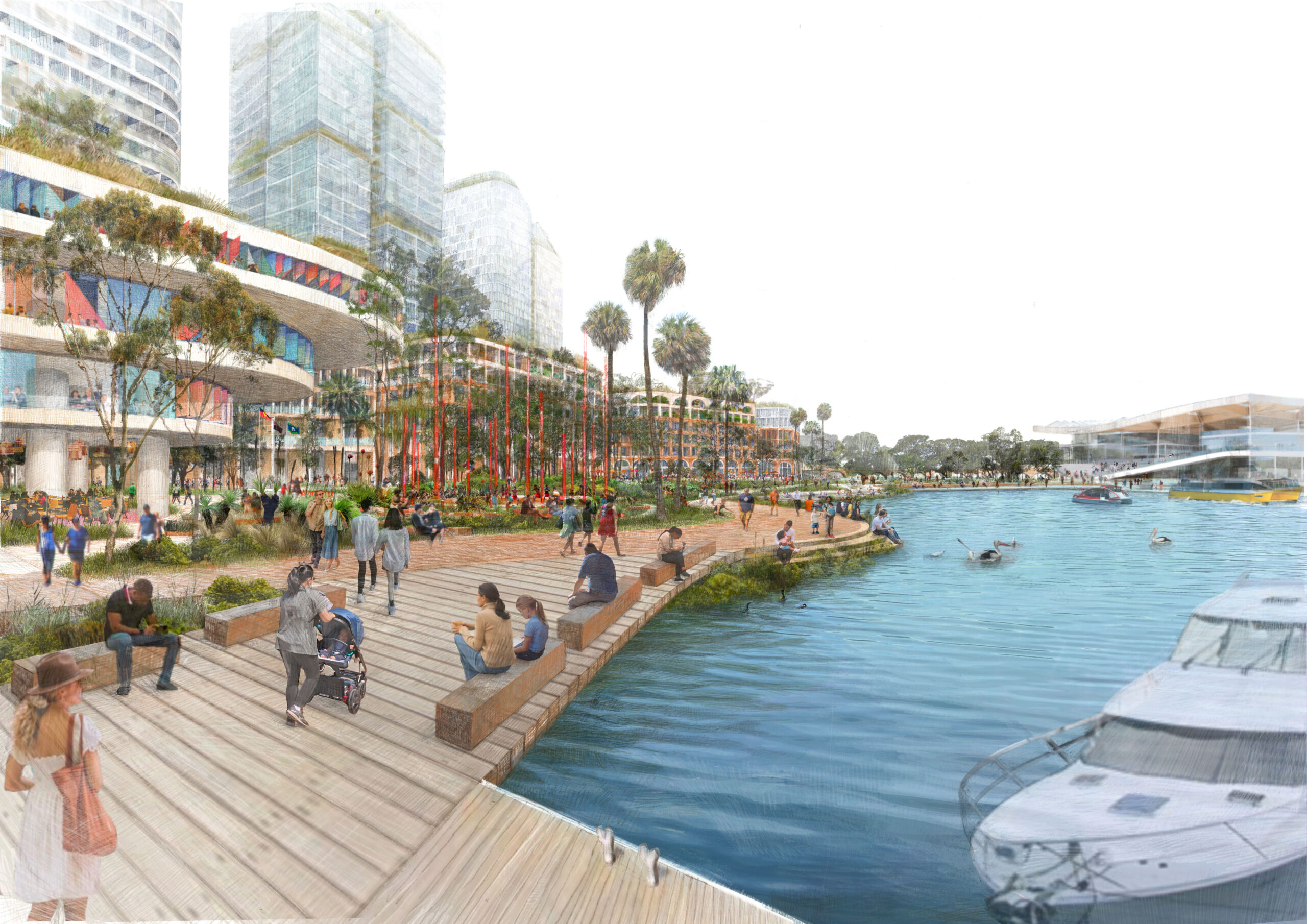 Разработка мастер-плана велась при активном участии и согласовании с ключевыми государственными структурами, включая Департамент планирования и окружающей среды, Правительственного архитектора Нового Южного Уэльса и Транспортное управление. Это гарантировало, что проект стал не просто архитектурной инициативой, но и полностью интегрированным элементом городского развития.
