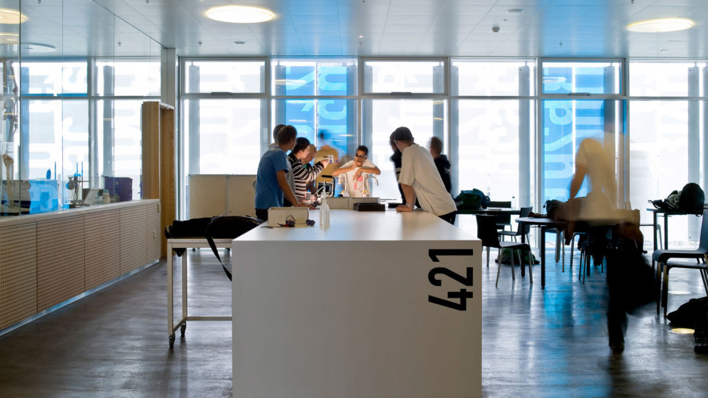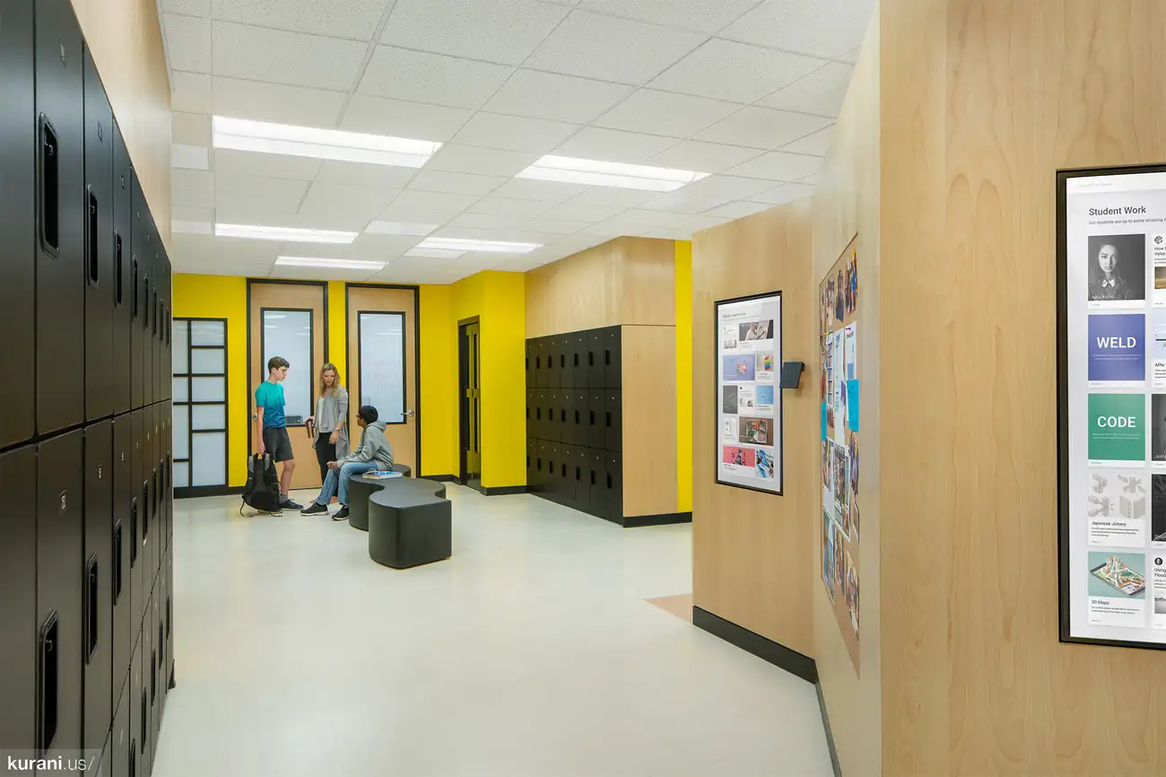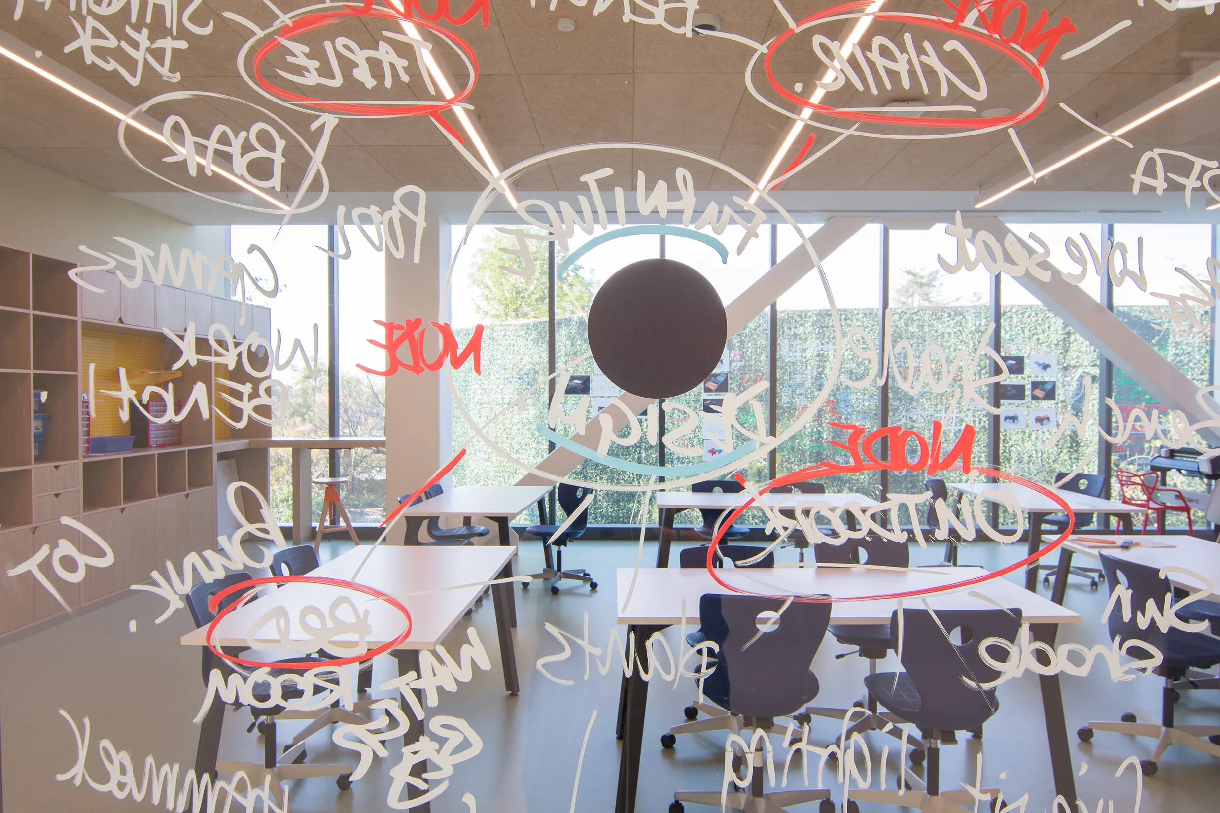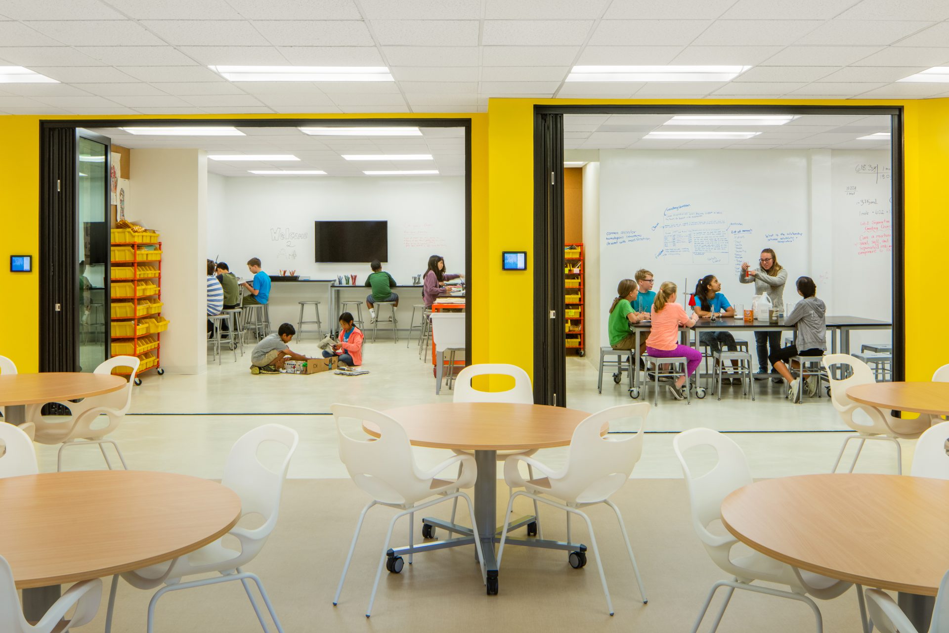Некоторые из гибких учебных сред включают в себя личные уголки и уголки для чтения, где можно спокойно учиться или общаться. Кроме того, есть лаборатория для проектирования и изготовления, лаборатория идей для мозгового штурма и чат-лаборатория для обсуждений и решения проблем.