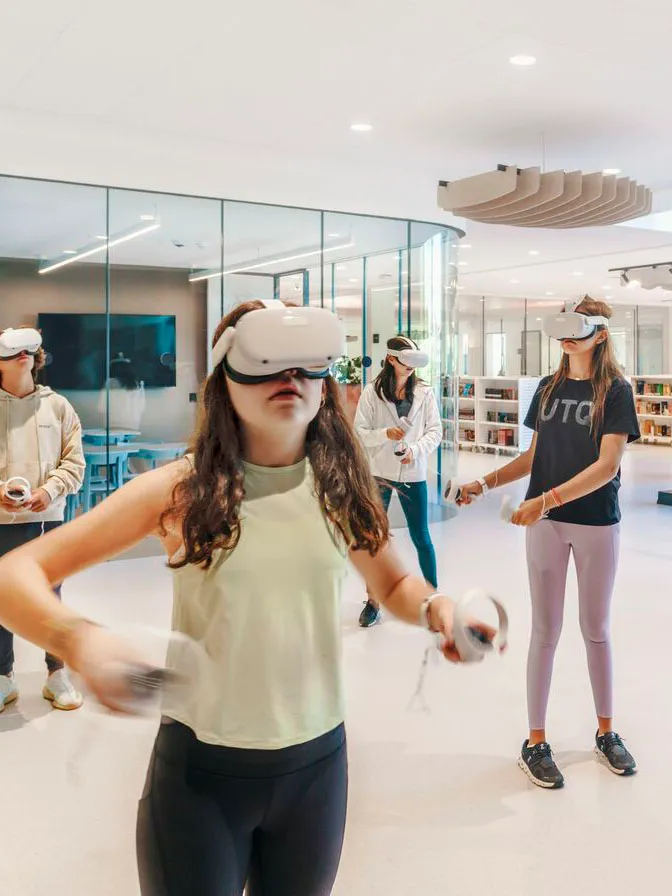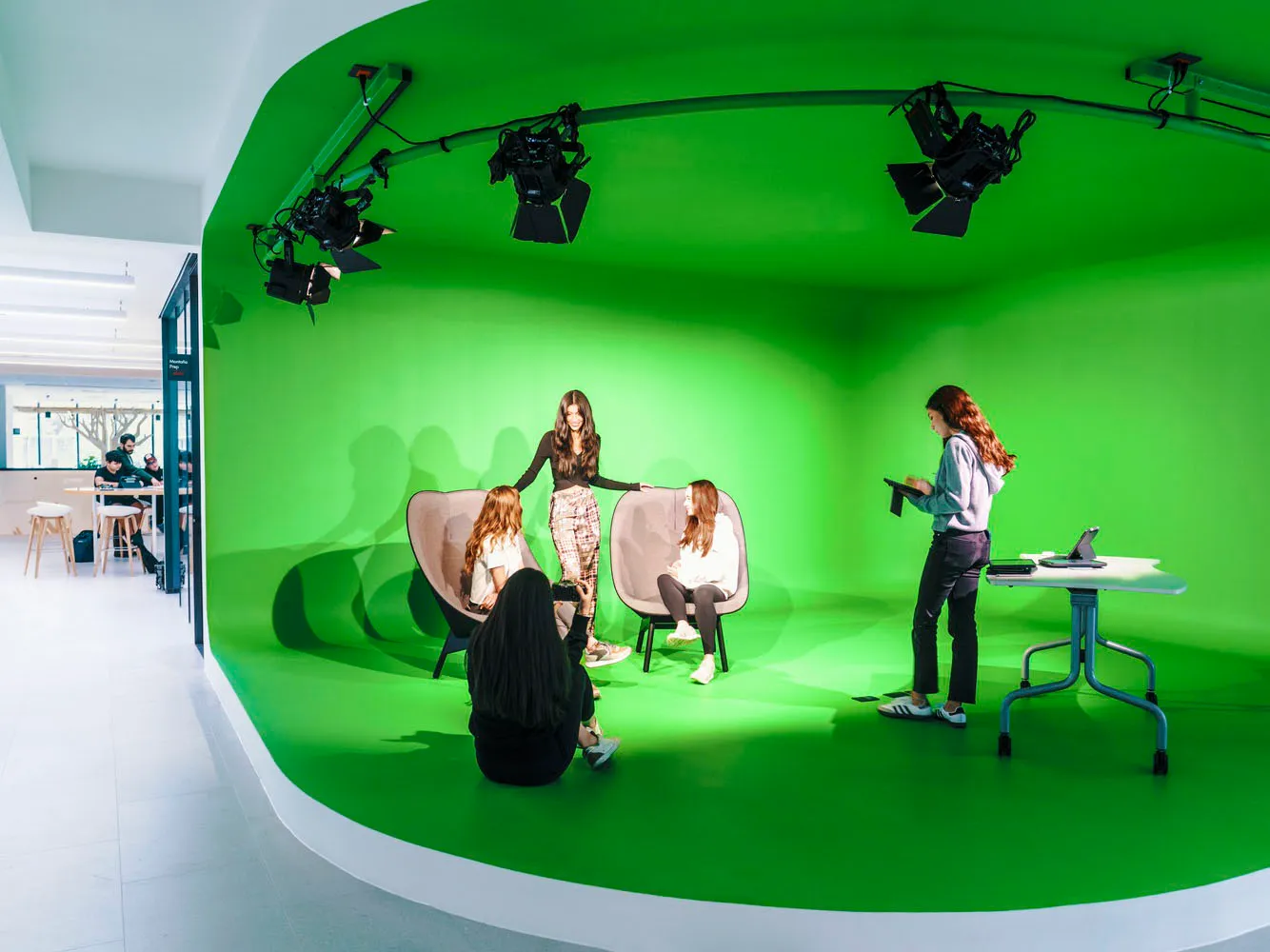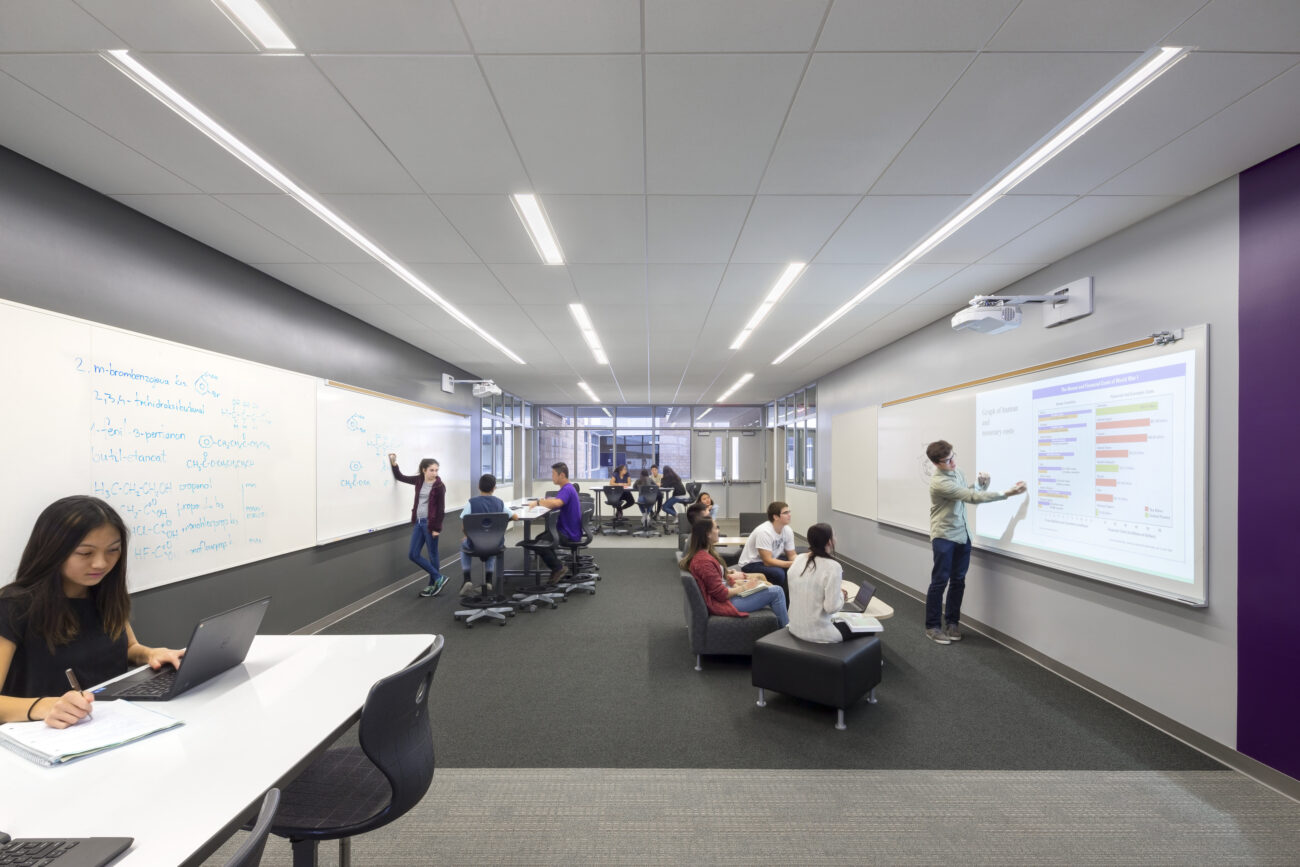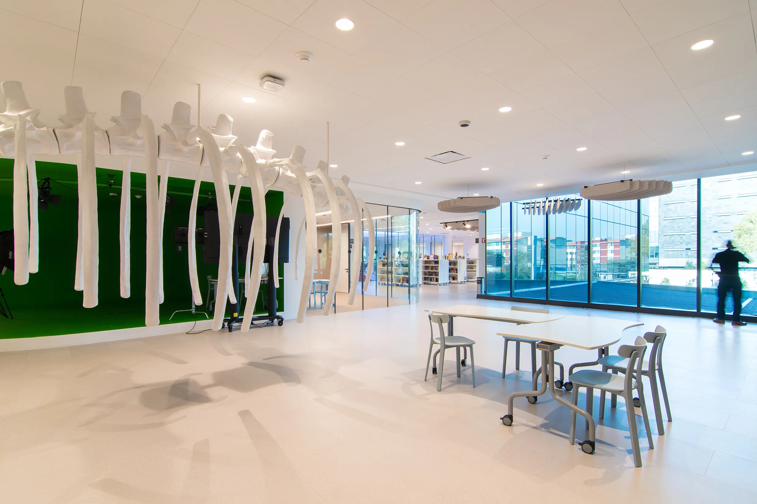 Некоторые из гибких учебных сред включают в себя личные уголки и уголки для чтения, где можно спокойно учиться или общаться. Кроме того, есть лаборатория для проектирования и изготовления, лаборатория идей для мозгового штурма и чат-лаборатория для обсуждений и решения проблем.