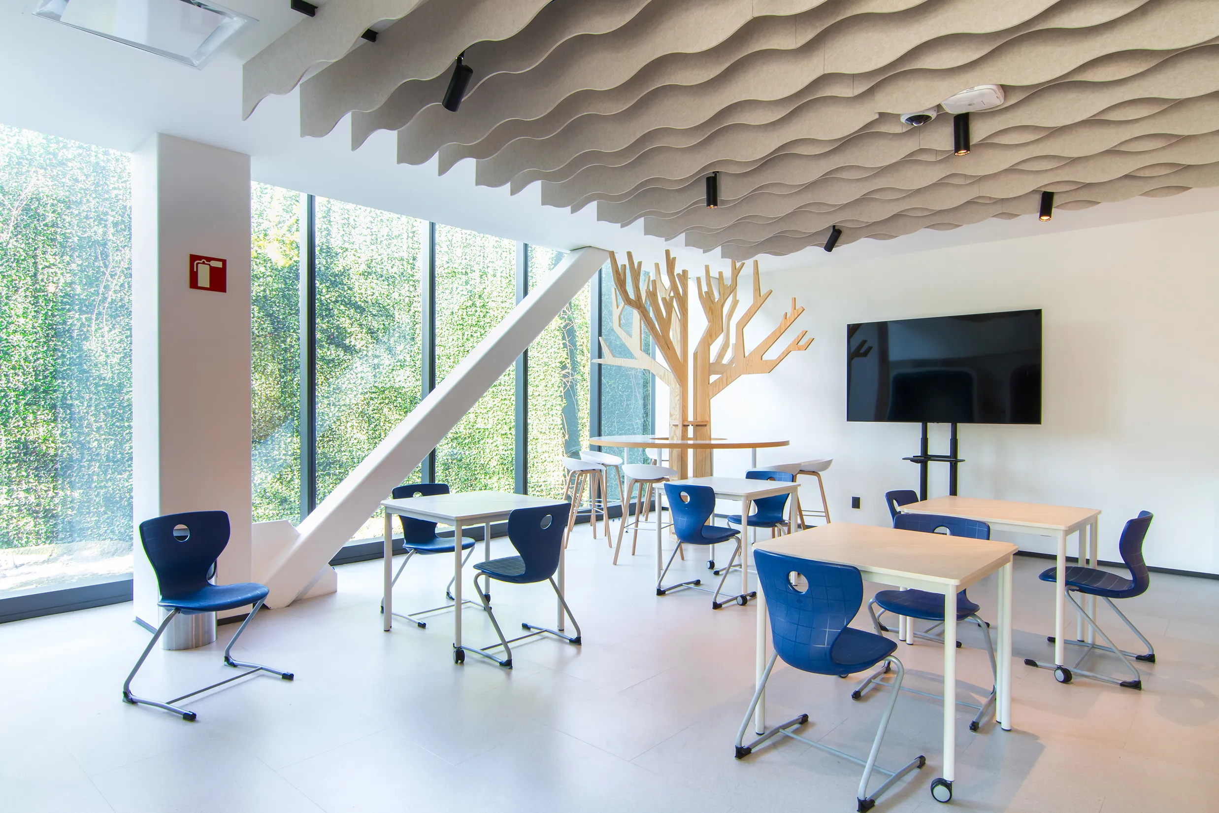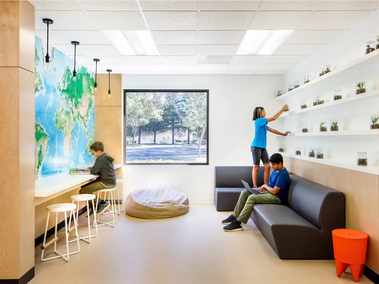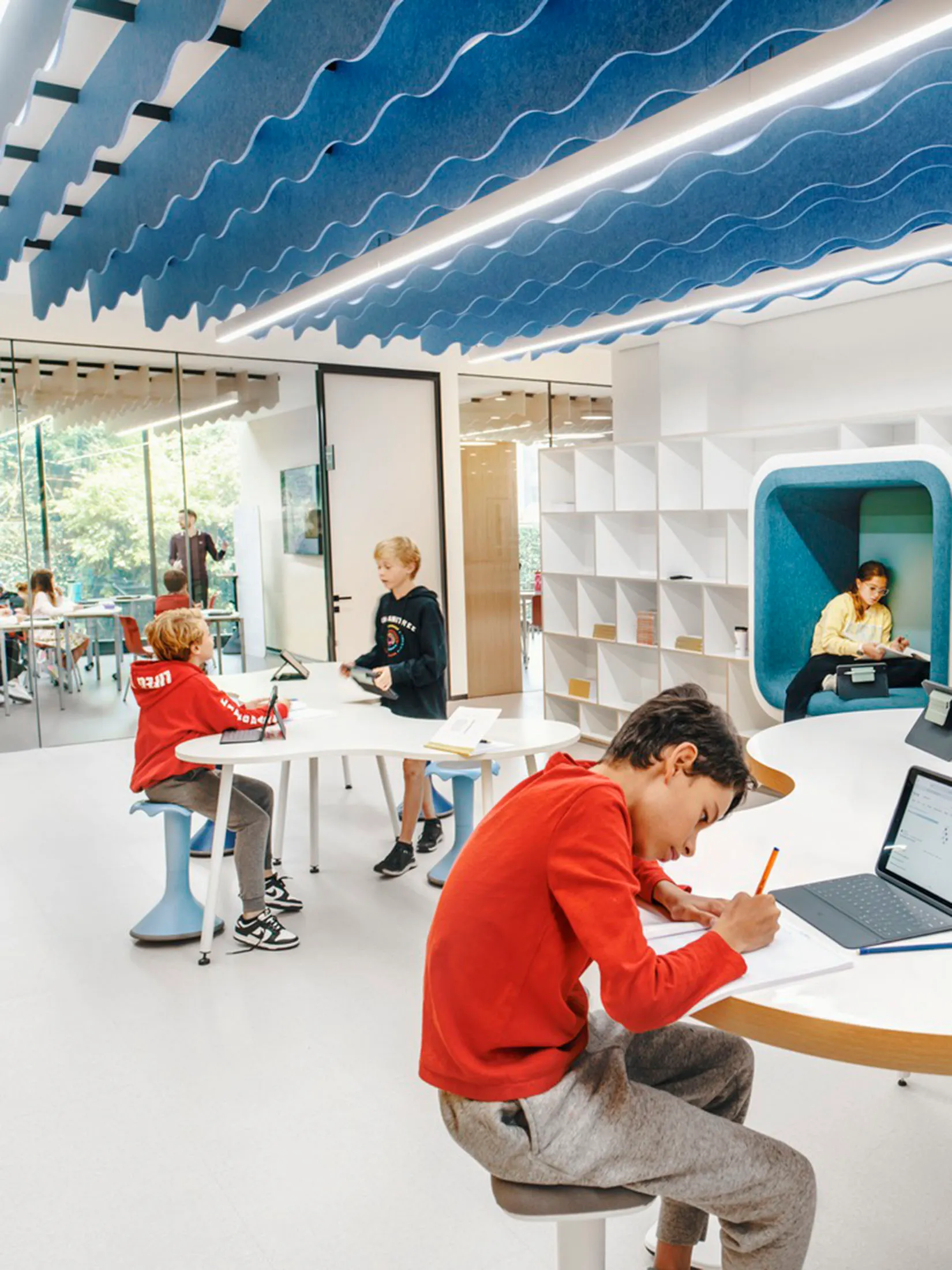 В отличие от обычных школ или классов , здесь нет скрипучих стульев, отвлекающих внимание украшений или ненужной техники, которой ученики не пользуются. Каждое решение было осознанным и направлено на создание условий для определённых видов деятельности, а не на следование традициям.