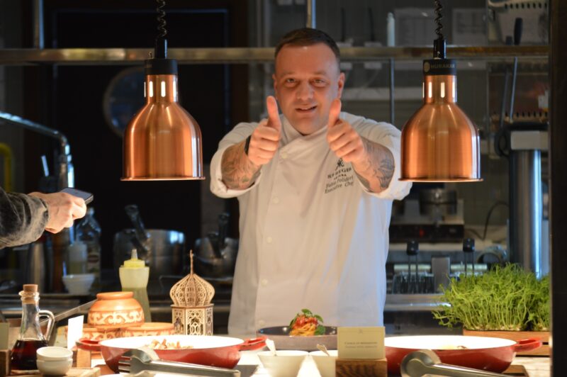 Интерьер The Flynn поддерживает концепцию текстур и материалов, создавая тактильные впечатления для гостей и жителей. Пространства внутри квартиры и общественных зон сочетает тёплые и мягкие материалы, контрастирующие с твёрдым и строгим внешним обликом здания. Каждый элемент интерьера был спроектирован с учётом удобства и эстетики, где каменные покрытия, такие как гранит и блюстоун, гармонично дополняют элементы из алюминия, придавая им блеск и контраст.