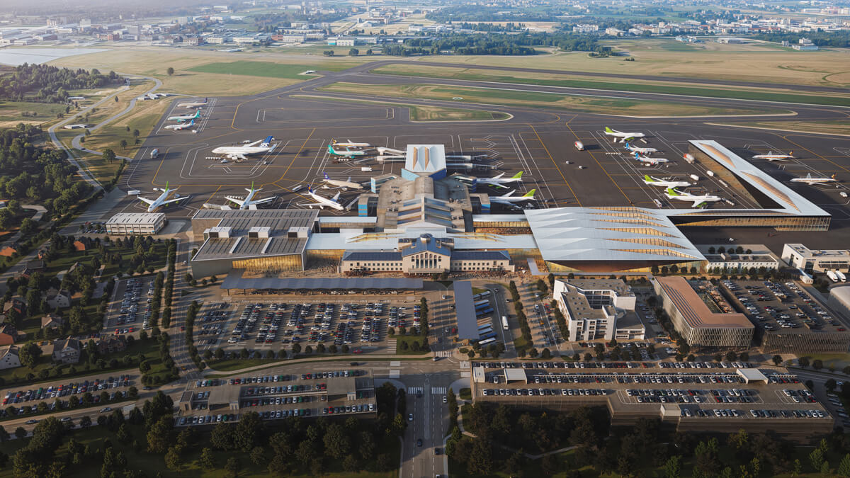 - Транспортный Хаб: Терминал интегрирован с мастер-планом аэропорта по созданию центральной Airport Plaza — важного мультимодального узла. Он обеспечит бесшовное сообщение с планируемой высокоскоростной железнодорожной станцией Rail Baltica, а также с местными автобусными сетями, велосипедными и пешеходными маршрутами.